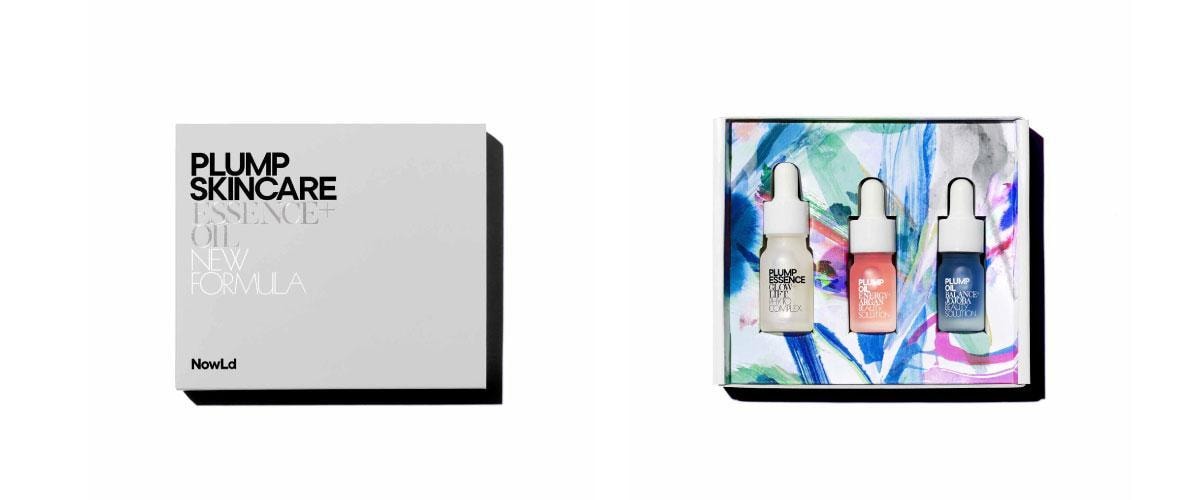 パッケージはペイントアーティスト佐々木香菜子氏による描き下ろし。プランプエッセンスのスーッと伸びていく流動的な感じと、プランプオイルの一滴一滴のテクスチャーが植物の持つエネルギーと共に表現されています。