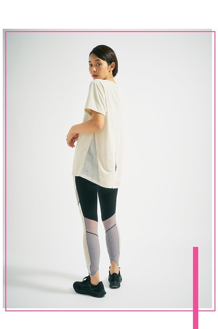 ブロッキングのデザインと通気性にこだわったタイツ。