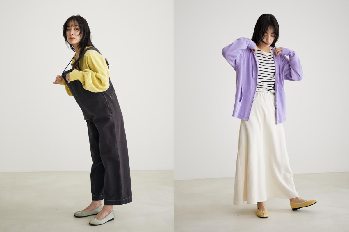 ラウンジウェアの心地よい着心地と、スカートやカーディガンなどのタウンユースなで活躍するアイテムは、お出かけシーンにもぴったり。