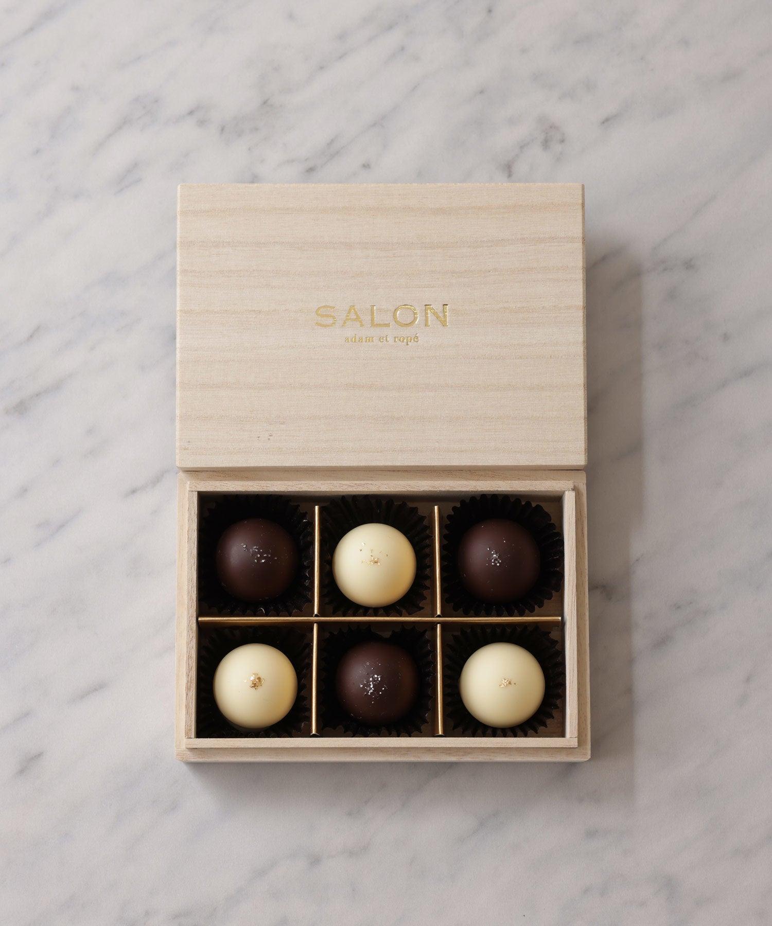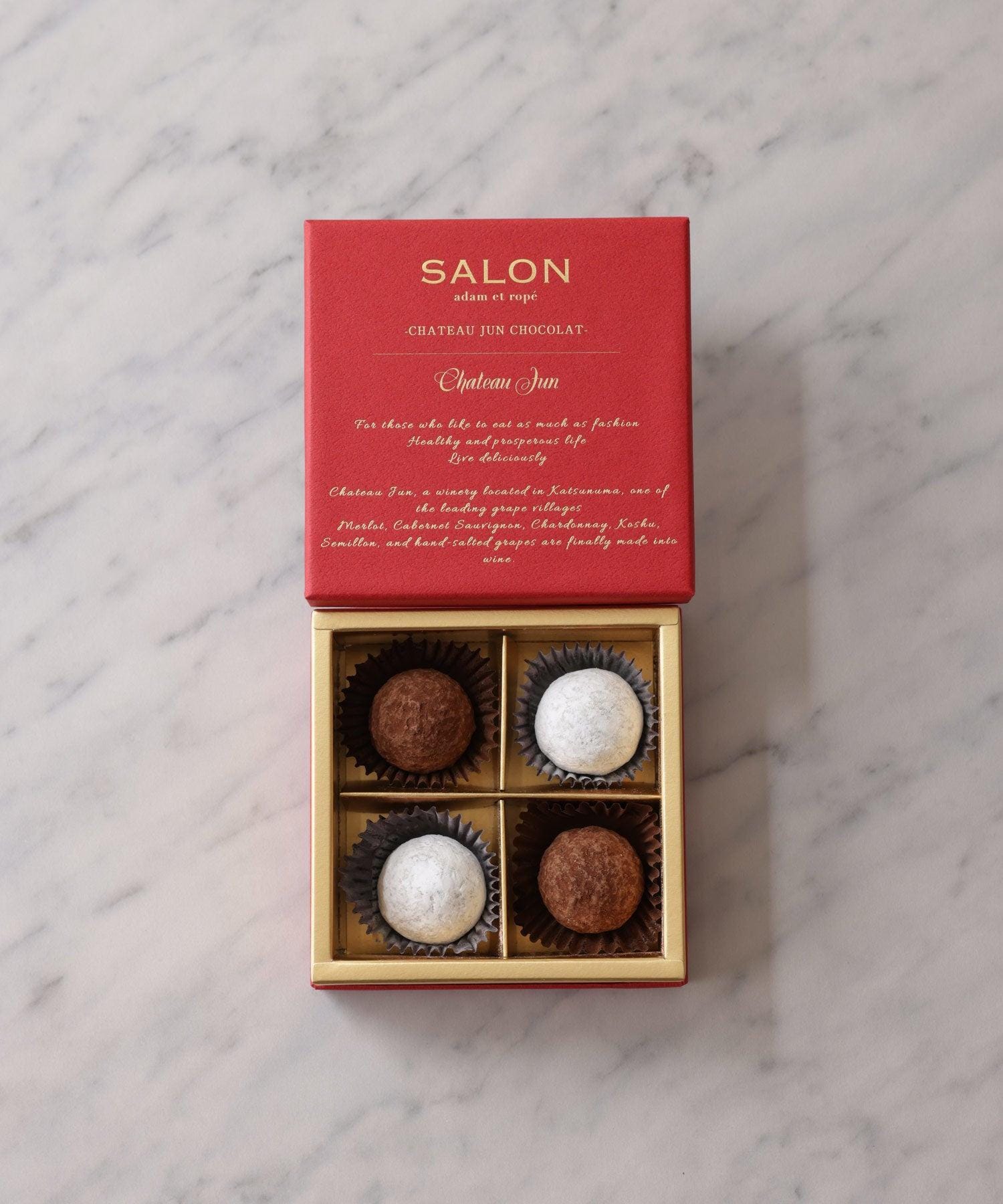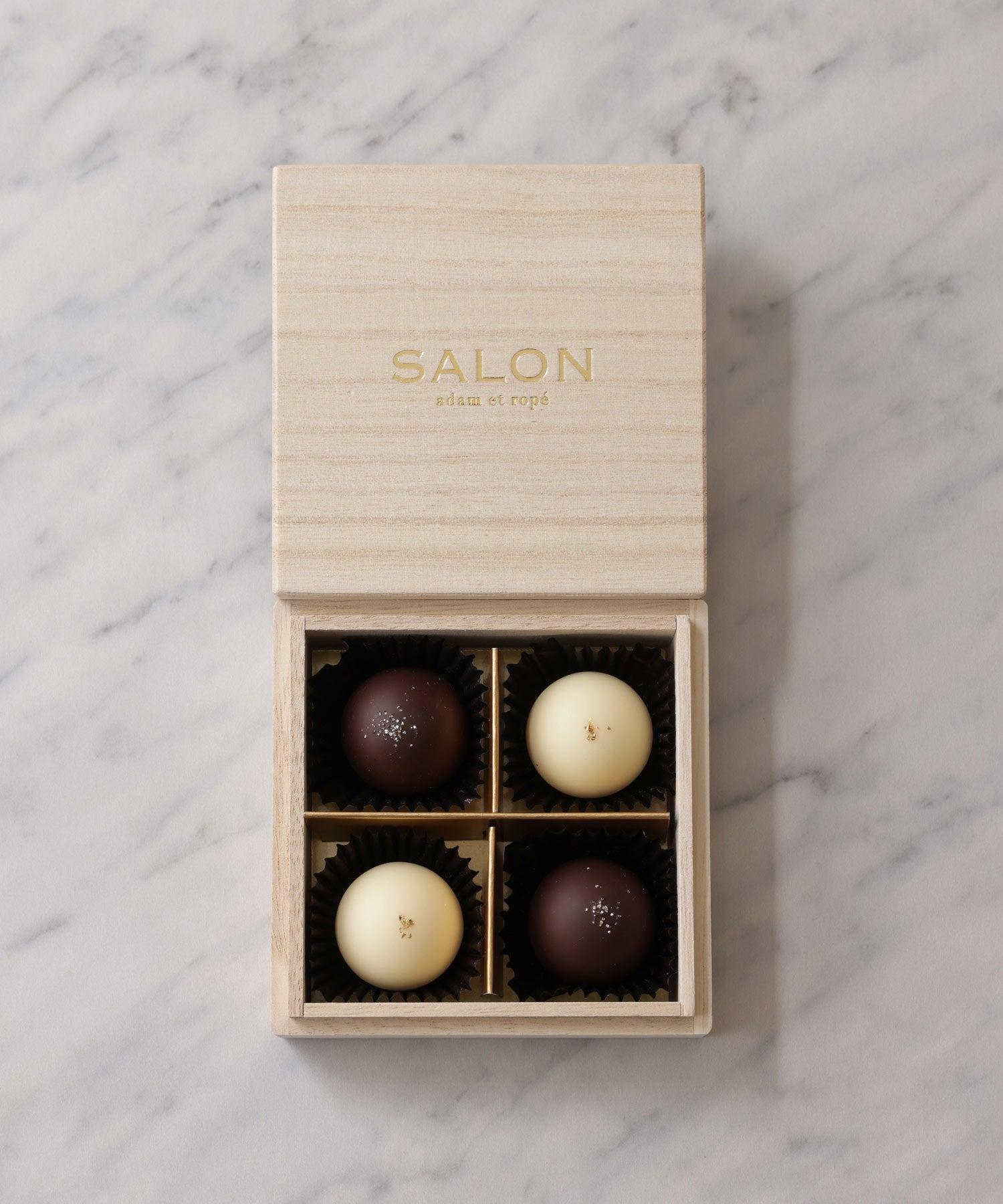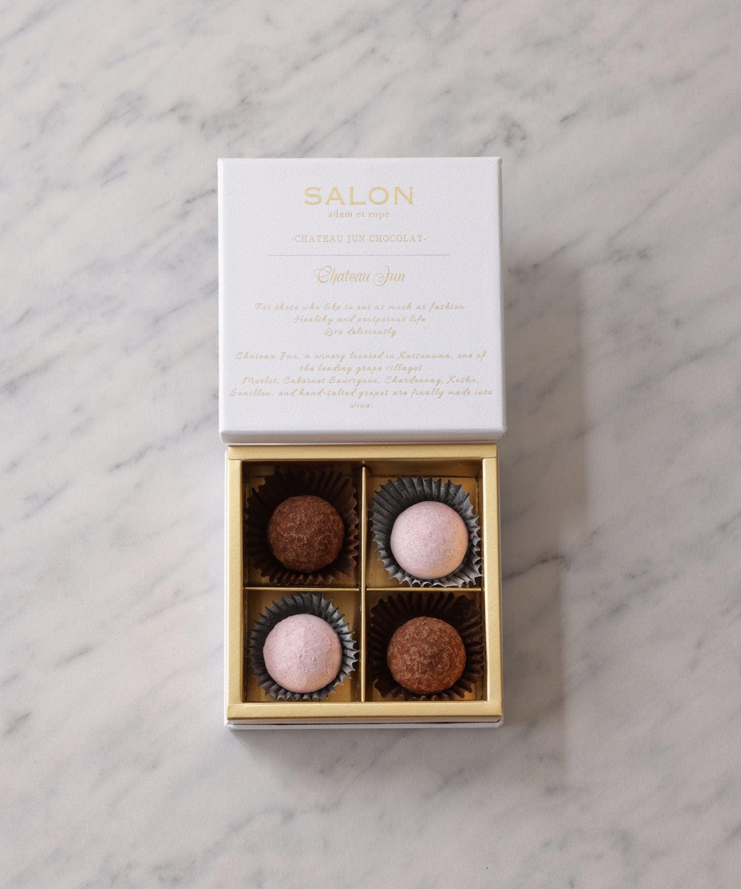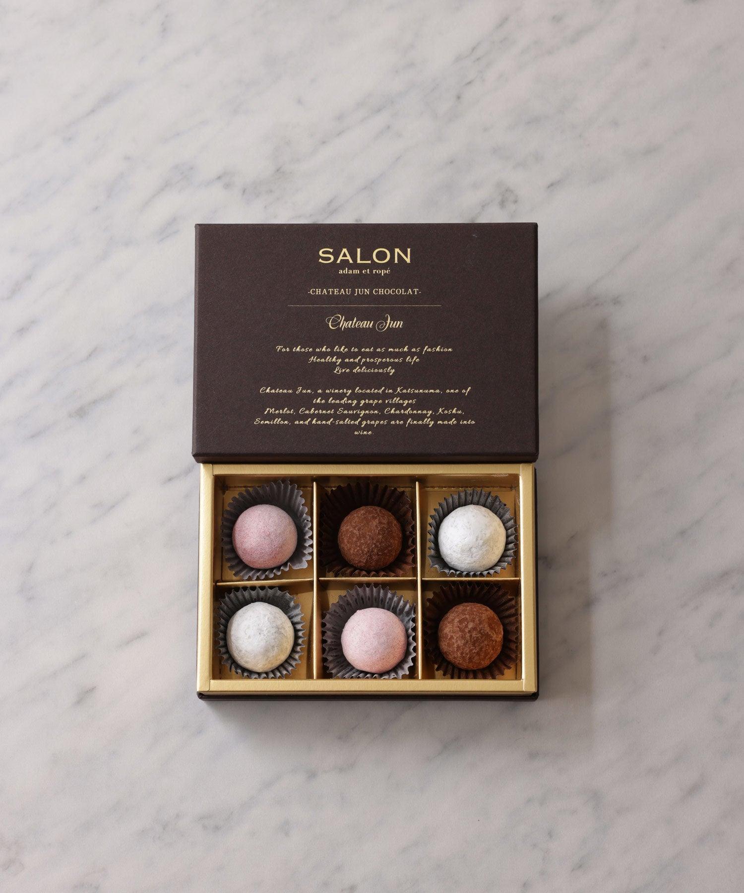 SALONの“ひと粒ひと粒を堪能したい”こだわりのショコラがValentine限定で登場。山梨県勝沼にあるJUNのワイナリー「シャトージュン」で造られたワインの大人な甘さと芳醇な香りがとろける3種のショコラです。