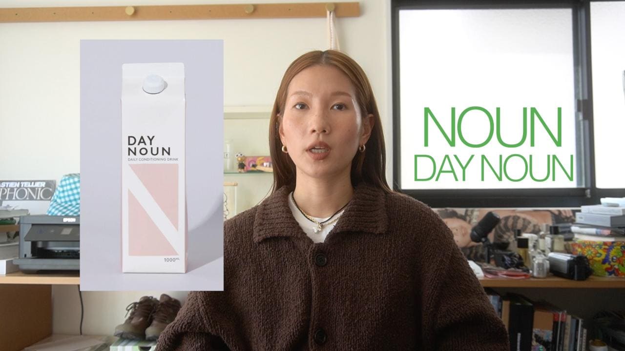 「次は、〈NOUN(ノウン)〉のDAY NOUNを紹介します。だいぶファスティングキャラが定着してきたと思うんですけど(笑)。今年は3回くらい〈NOUN〉のドリンクでファスティングを行いました。普段から、朝の水分補給とか栄養補給とかもすごい大事にしてて、そんなときに飲んでいるのがこのドリンクです。私は、朝起きて白湯を1、2杯飲んだ後にDAY NOUNを1杯飲んでいます。朝食をね、あまり食べる方じゃないので、トレーニングをした後とかは食べたりすることもあるんだけど、基本あんまり食べないの。でもそこで朝食を抜くんじゃなくて固形物を控えて内臓の負担を減らして、このドリンクでエネルギーをチャージして必要な栄養分を補うっていうのを心がけています。あとはね、このDAY NOUNを使って、オートファジーっていって1日の中で何時間かあけてファスティングをするっていう方法もすごくおすすめなので、ぜひ、調べてみてください。ファスティングは絶対できないって思う人もいると思うんですけど、やればできるので、是非試してみてください」