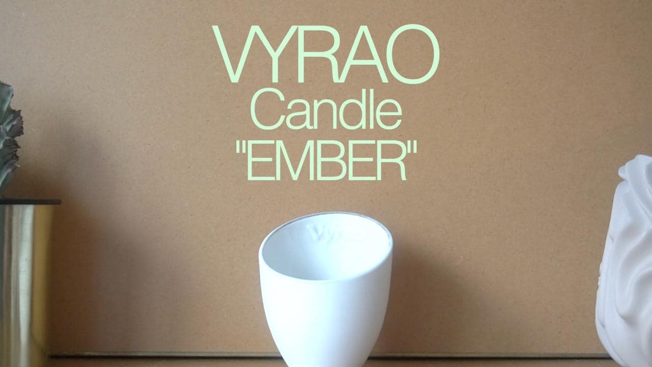 「最後は、〈Vyrao(バイラオ)〉のキャンドルを紹介したいと思います。今年ね、香り系でいちばんヒットしたのはこのキャンドルかなって思って、今月、菊乃が気になるもの AUGUST 2022を観てくれた方もいると思うんですが、ディレクターのヤスミンさんに直接インタビューさせていただき、とてもインスピレーショナルな話を聞くことができました。私のお気に入りは、色もそうなんだけど香りもかなりミステリアスで、ダークで、スモーキーで、奥行きのある雰囲気をまとったEmberの香りが一番お気に入りでした。〈Vyrao〉のインセンスとかパフュームとかフレグランスは他にはない個性的な香りが多いので、皆さんもぜひチェックしてみてください」