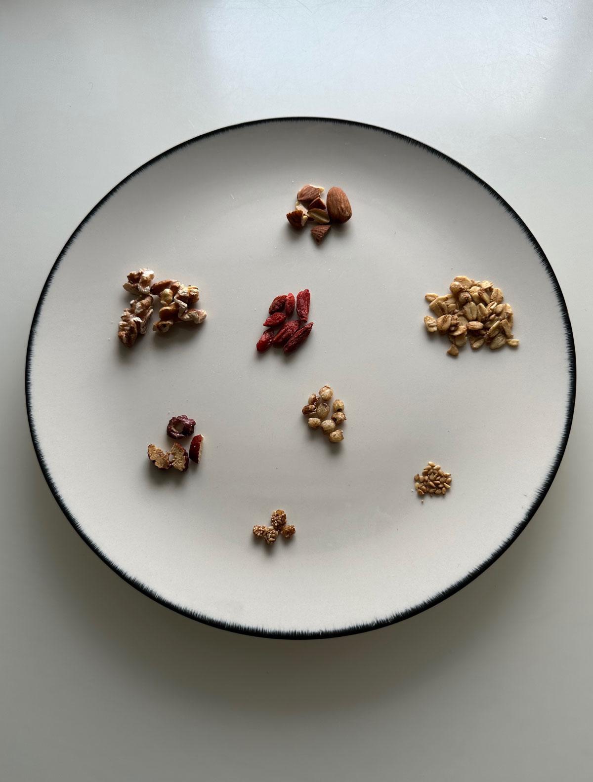 正直な第一印象をお伝えすると、「想像以上にハードル高い、玄人好みの味?!アーモンドとはとむぎの噛み応え、半端ないんだが?」でした。八角と山椒の香りが効いて、まるで薬膳のよう。あまりの衝撃に、次はそのまま食べてみることに。クコの実やくるみが香ばしい。より素材の味と歯ごたえのハーモニーをダイレクトに味わえ、気がつくと止まらなくなっていました。メープルシロップと白ごまの存在も確認でき「めちゃくちゃ奥深い味で、全く飽きがこないぞ」と、心の中で叫び声をあげたものです。これまでのグラノーラは、シナモンや砂糖たっぷりの洋風がお決まりでしたが、ポロロッカ「ナチュラルグラノーラ」は、素材の風味を生かした和な薄味。この素敵な味のハーモニーを理解すべく、素材を因数分解して食べてみたりもしました。一見、地味なはとむぎの風味と、クコの実の苦味が効いているのだとさらに理解が深まりました。