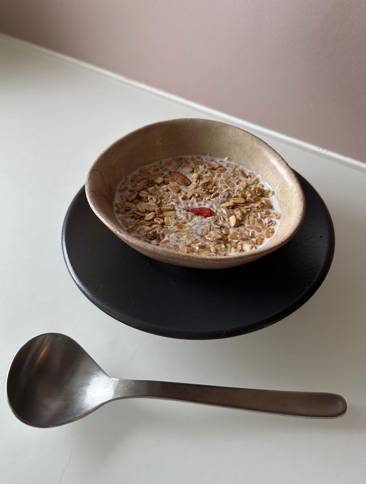 そんな中、ご紹介いただいたのがポロロッカ「ナチュラルグラノーラ」。〈Pororoca(ポロロッカ)〉は化粧水を愛用しているのですが、まさかグラノーラを発売するとは!しかもグルテンフリーということで期待が高まります。大好きななつめが入っている点も個人的にポイント高し。さっそくお気に入りのボウルに入れて、豆乳をかけていただきました。