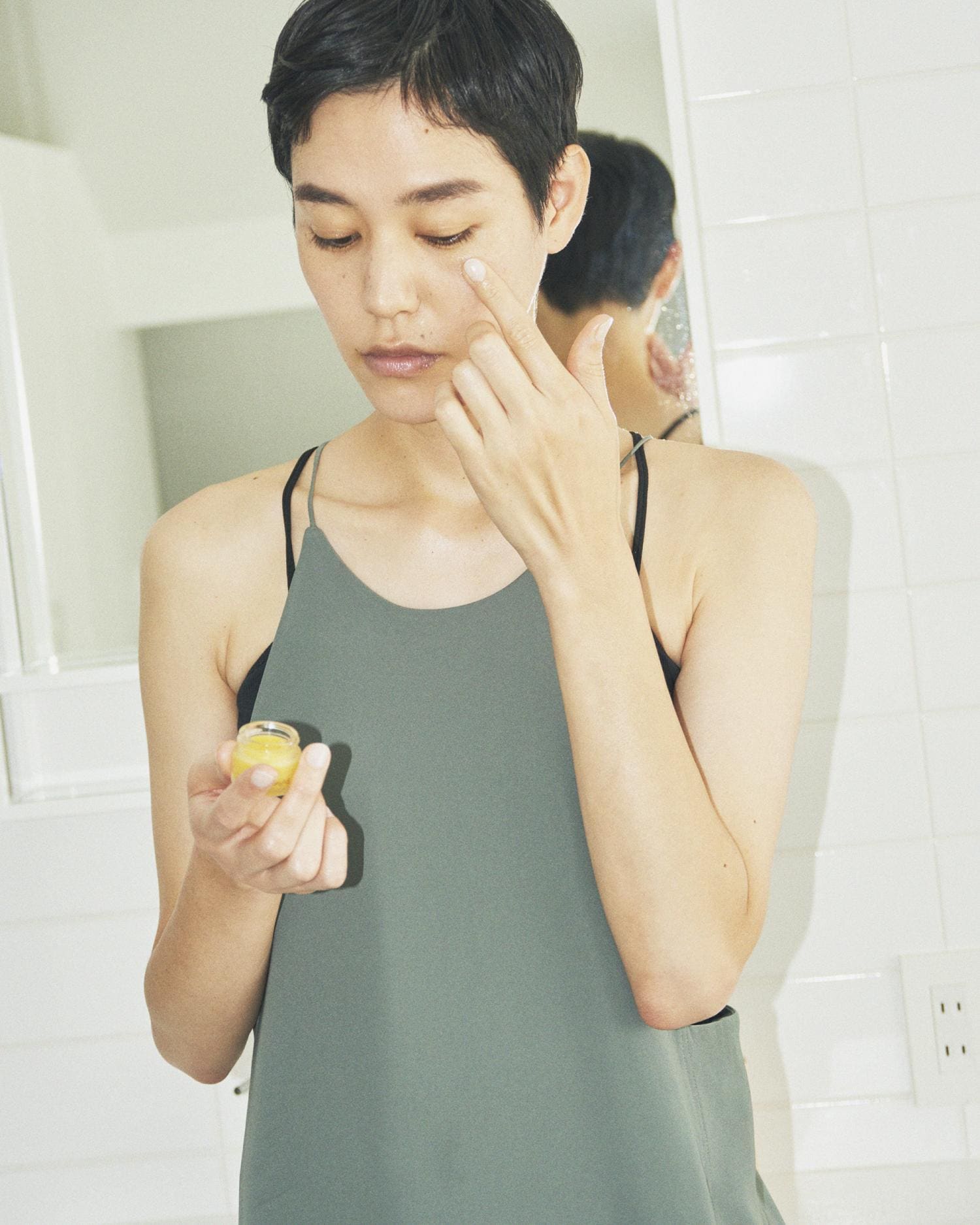 ニキビなどトラブルが起きている時やゆらぎやすい時期のケアは刺激が少なめの〈TSUKIHOSHIHI(月星日)〉の「エッセンスウォーター」や〈CLAYD(クレイド)〉の「ボディトリートメントセラム」にチェンジ。