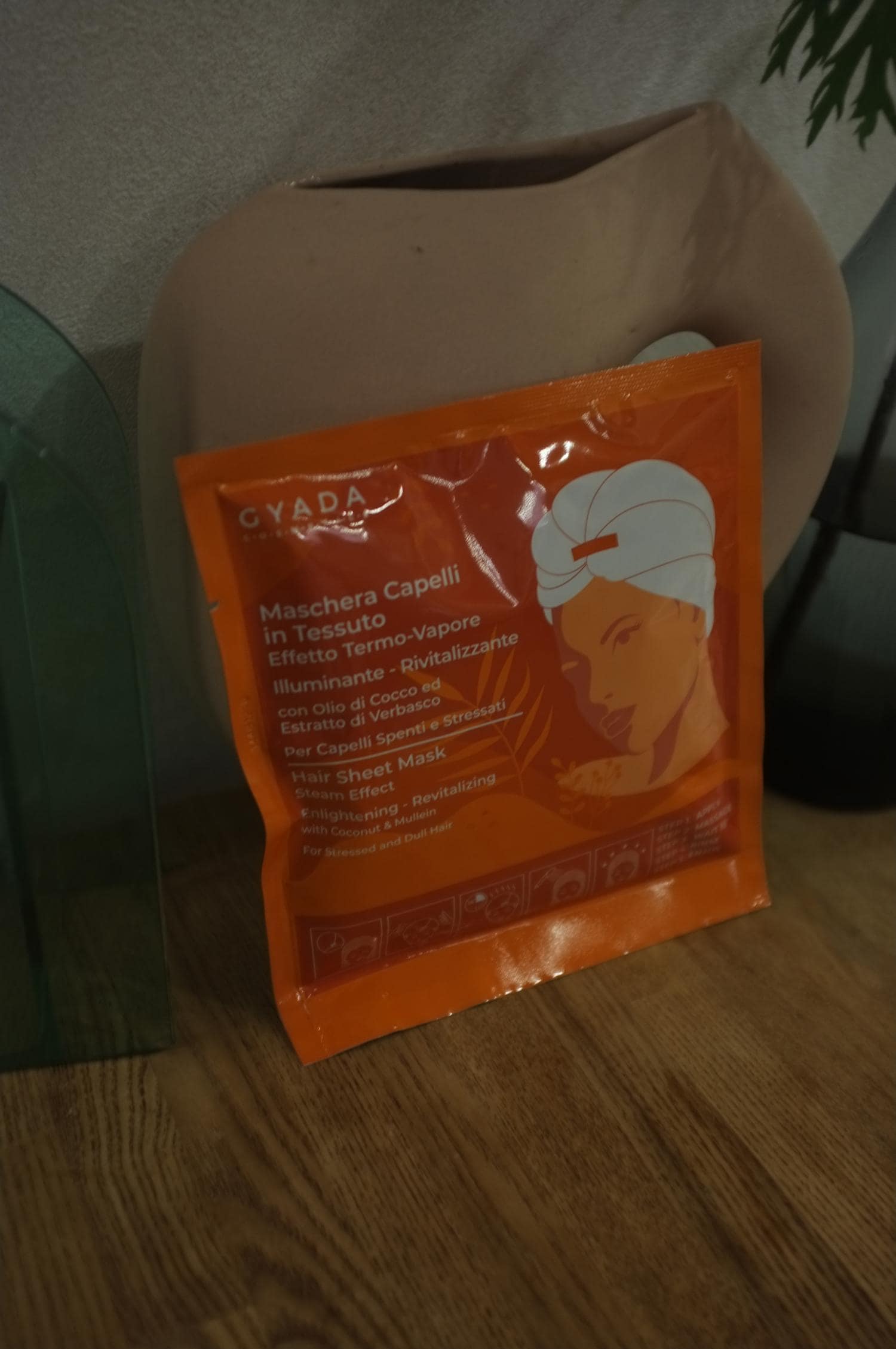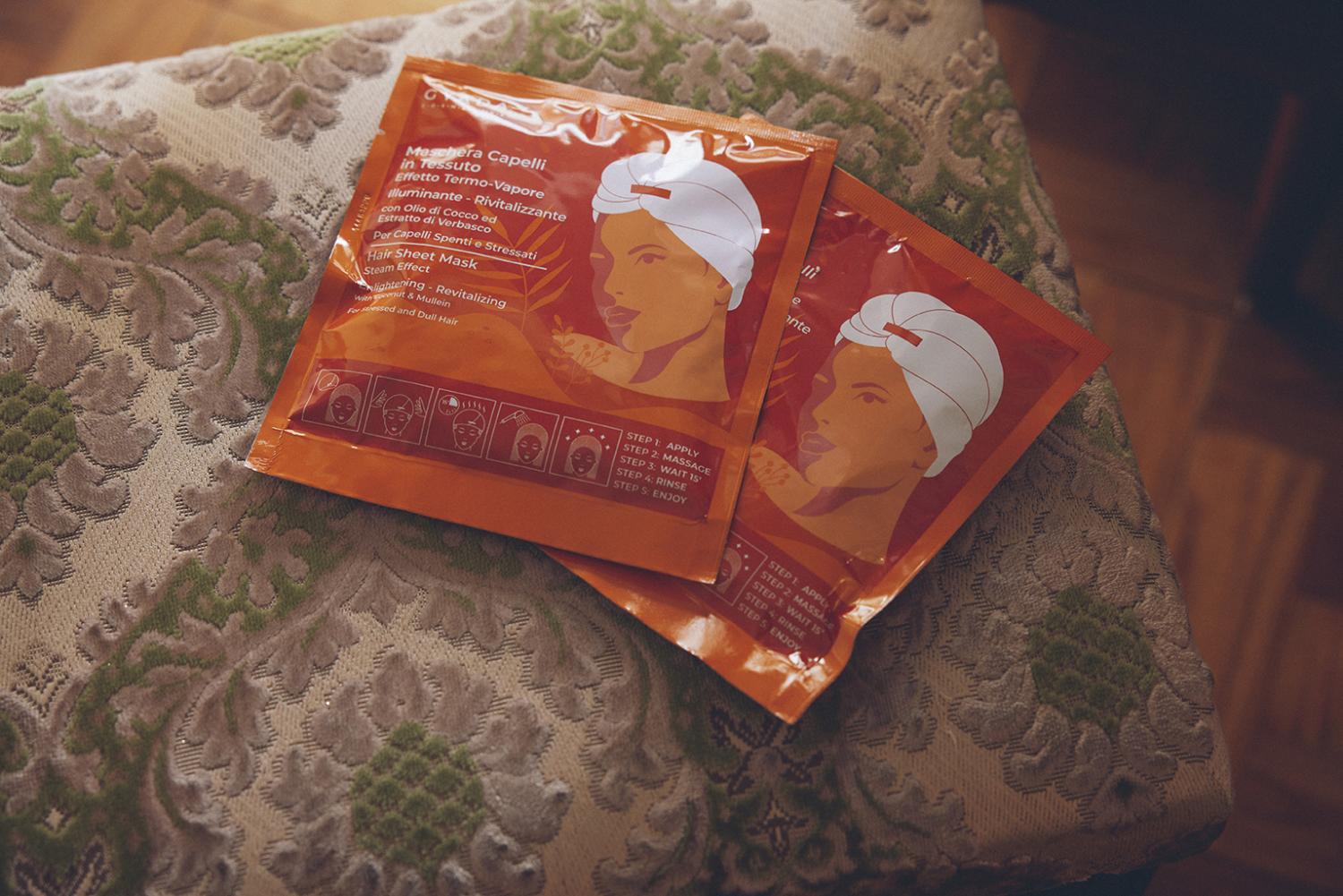 このシート付きのヘアマスクは本当に画期的だなと思いました。シート内にたっぷりトリートメントが塗布されているので、洗い流した髪の水分を少しだけきってから、すっぽり覆うように被って、ペタッとテープで留めるだけで準備OK。