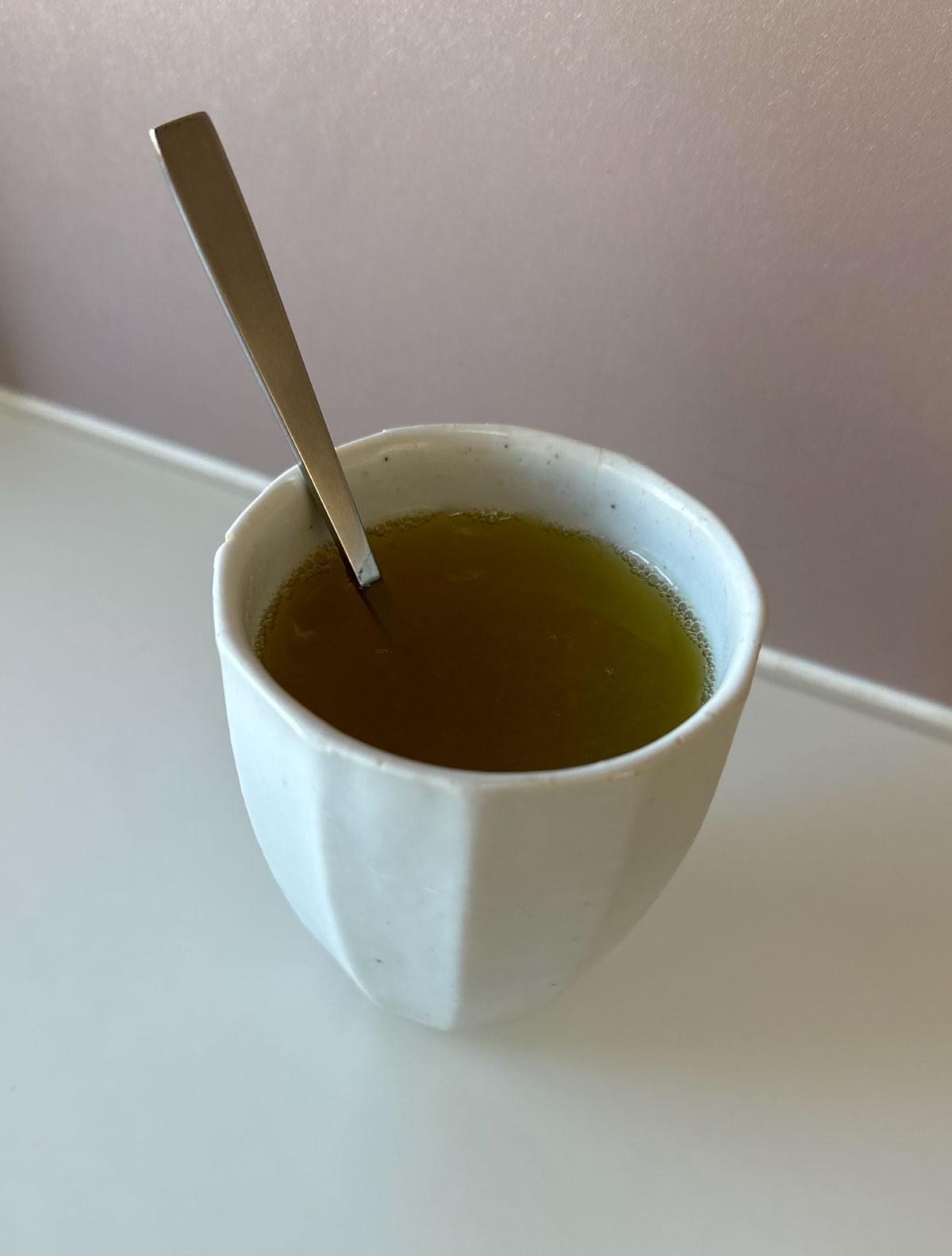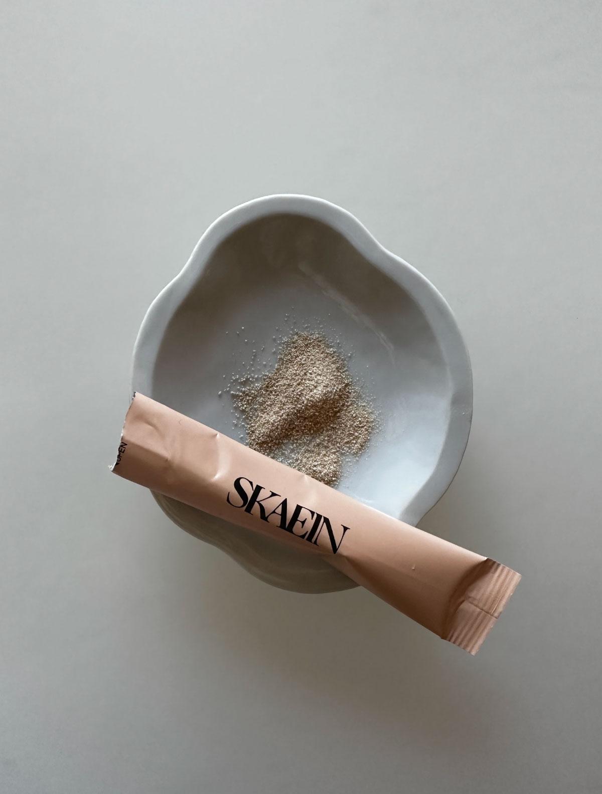 そんなとき、Life&Beauty by JUN ONLINEをきっかけに〈SKAEIN(スケイン)〉というダイエットアイテムに出合いました。低カロリーで満腹感を得られる、食事の代わりになるドリンクで、女性の美容をサポートする和漢エキス配合。一袋3gほどのパウダーで、100ml水またはお湯で溶かすだけ。韓国で行われている食事を置き換えるダイエット法だそうです。味は清涼感のあるグレープフルーツ味。正直、飲めない味ではなく、とろみもあるのでつるっと飲みやすいのですが、特に食欲はわかない。全然わかない。そして30分ほど経つと、不思議とお腹が満たされたような感覚に。青唐辛子発酵エキス入りでピリッとした風味があり、「これ以上食べちゃダメよ」というメッセージだと受け取っています。寒い日は七味をパラっとかけて、味変して飲むことも。