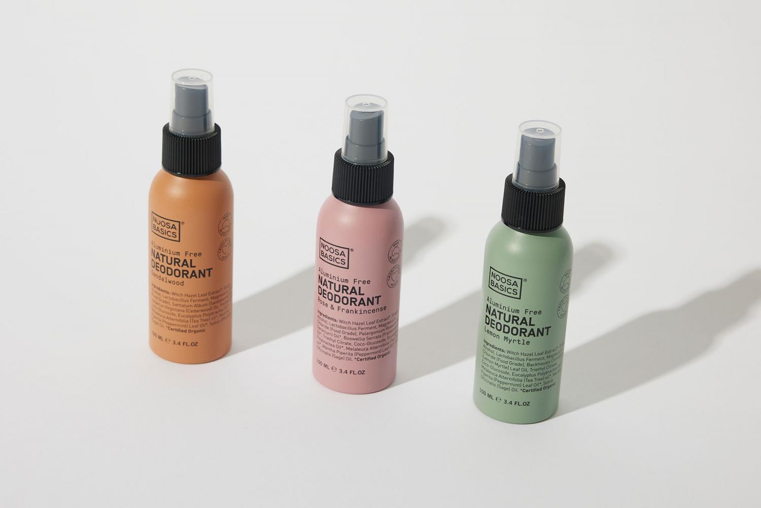 オーストラリア東部の小さな町「ヌーサ」の薬局が製造するボディケアブランド〈NOOSA BASICS(ヌーサ・ベーシックス)〉。美しいビーチが連なるヌーサで生まれたアイテムは、最高品質の植物成分のみを使用し生分解可能なサステナブルなパッケージを採用しています。 デオドラントボディスプレー は、ティーツリーやユーカリなどの数種類の精油や植物エキスを配合したナチュラルな香り。気になるわきの下のニオイを抑え、一日中フレッシュな気分を保ちます。(左から)「サンダルウッド」に「ローズ&フランキンセンス」、「レモンマートル」の3種類の香り。天然植物由来のスプレーで鼻にツンとしないので、化学物質などの強い香りが苦手な方におすすめです。