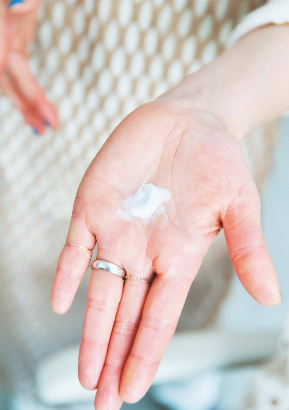 生まれつきというウェーブヘアが印象的な福嶋彩夏さんは、髪が硬めで広がりやすいのがお悩み。特に梅雨時期は、それに加えてバサバサしたり、うねりが強く現れるそう。