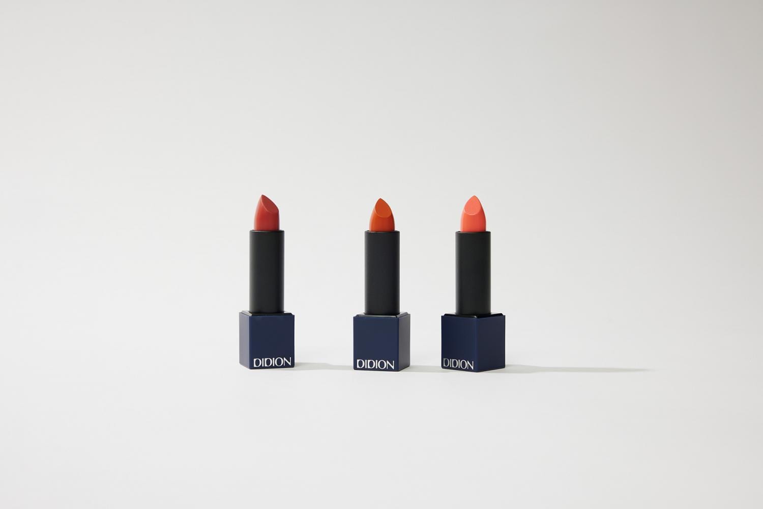 マスク生活から解き放たれたこの夏は、口元にもカラーを足して。〈DIDION〉の リップスティック サテンマット は発色、ツヤ、うるおいの絶妙なバランスを追求したセミマットタイプ。 恋する女性の唇をテーマにしたレッドの「03 Crazy About You(60)」(写真左)と、決意の表れを感じさせるキャロットオレンジの「02 Determine(70)」(写真中)、心に強さを秘めた女性をイメージした青みピンクカラーの「01 Break Out(63)」(写真右)と、どれも魅力的。