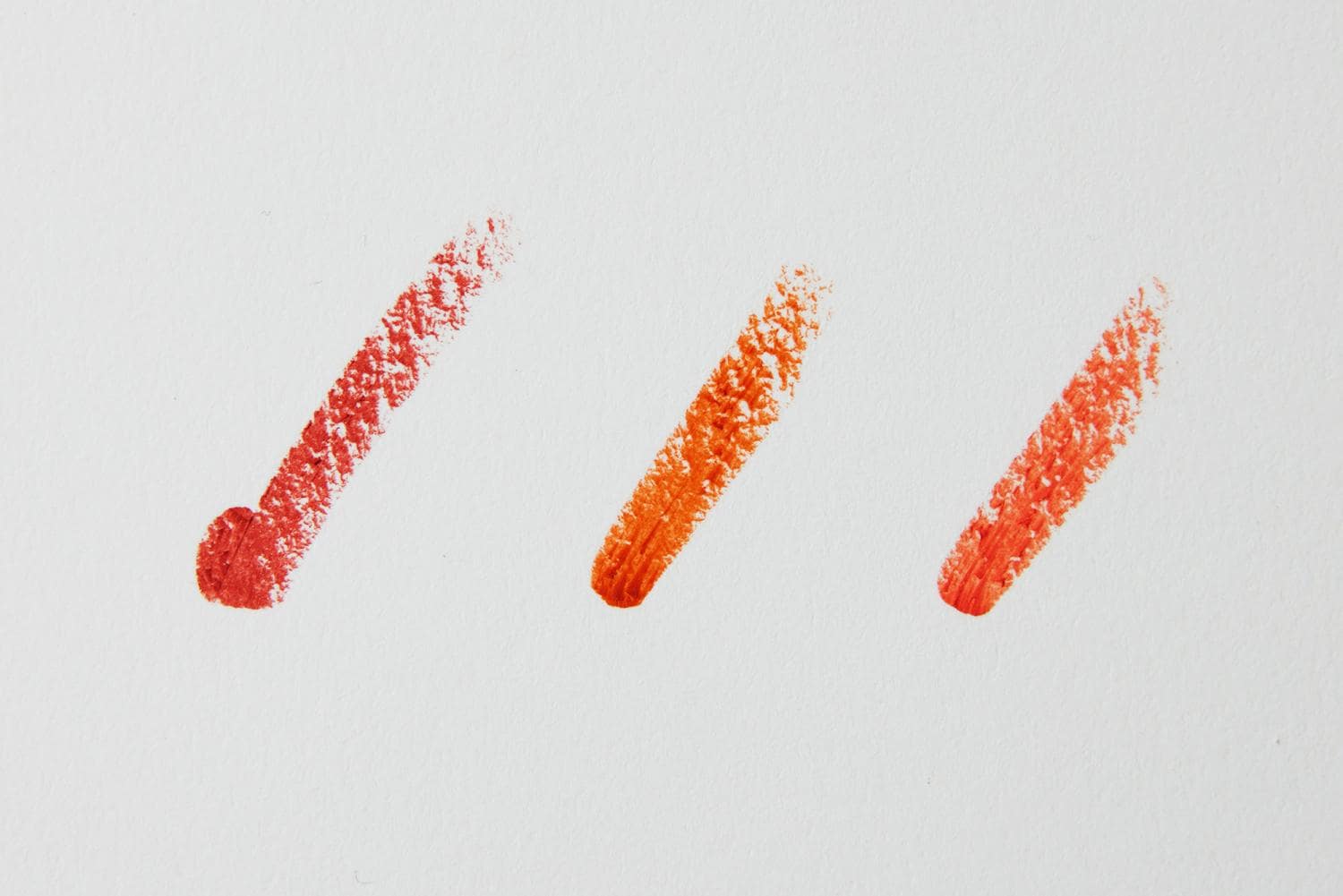 汗・水・こすれに強い スタイリングブロウマスカラ からは新色2色が登場。(写真下から)やりすぎない垢抜け眉をつくる「04 テラコッタブラウン(75)」(写真下)と、自眉毛をナチュラルに引き立てる「05 オリーブブラウン(37)」(写真中)がラインナップ。 0.9mmの極細ペンシルが自眉毛のような自然な毛並みを演出する スリムブロウペンシル (写真上)からは「03 テラコッタブラウン(75)」が。テラコッタに赤をしのばせたカラーで肌色がくすみにくく、大人のカラーメイクにぴったりの色味です。