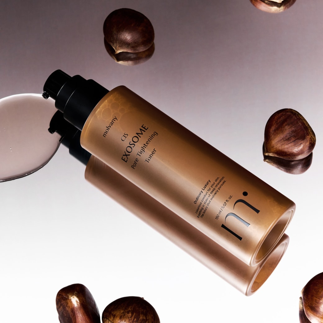 「Castanea Crenata Inner Shell 100% Origin Water Essence」から成分が一新され、クリの成分(=ユルピ)に含まれるタンニンや複数のポリフェノール類などの成分をエクソソーム加工を施してナノサイズ化することで、より肌の隅々まで届けてその効果を発揮させる、水のようなテクスチャーでさらっとした仕上がりの使いやすい化粧水。