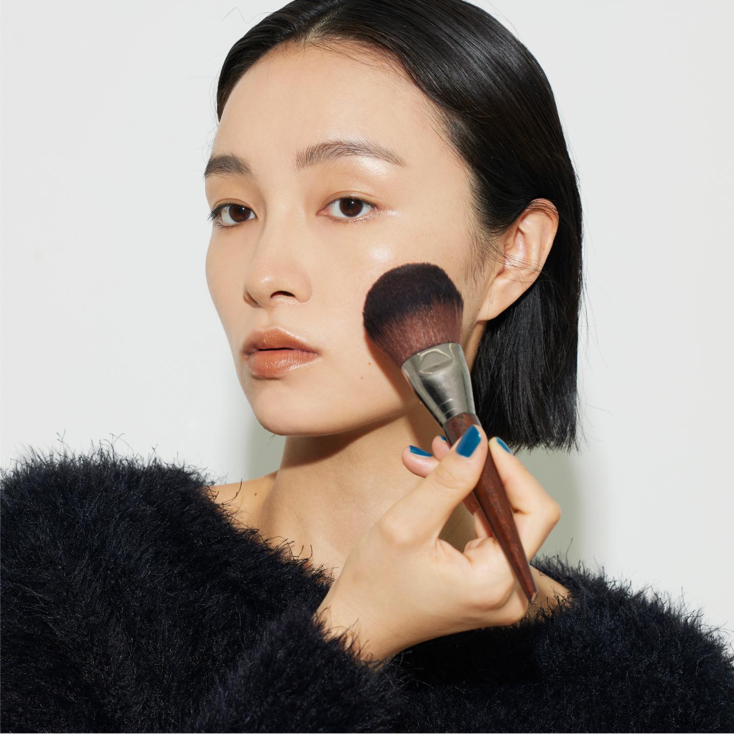 2. 肌にタップしたファンデーションを212 ハイライター&クリームチークブラシの毛先で肌をクルクルとなでるようにで馴染ませます。肌ムラやクマなどが気になる部分は重ね付けしても。