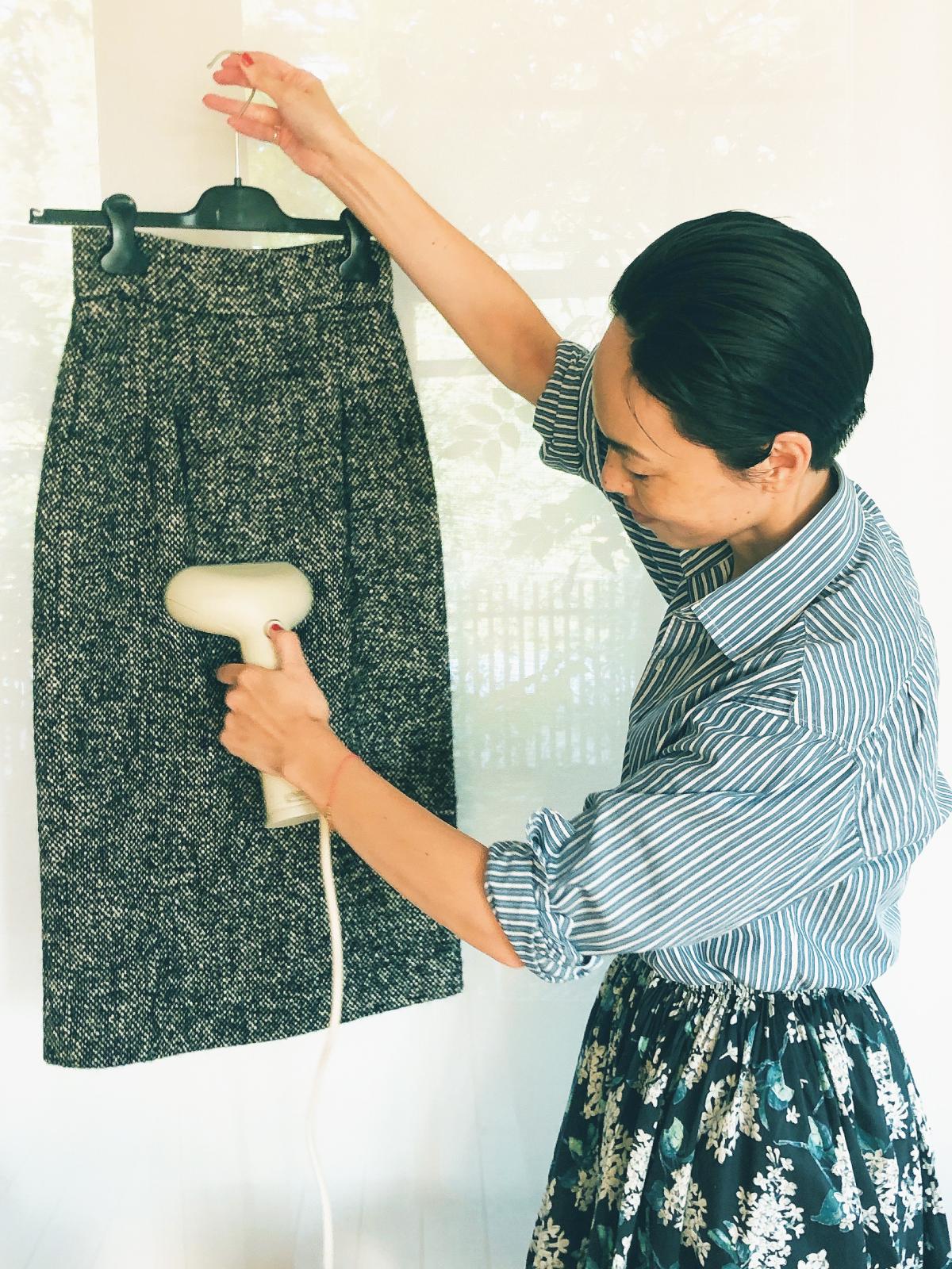 A. 私は、シワを伸ばしプレスして折り目を付けたい時にはアイロンを。シワを取りたいだけの場合はスチーマーを利用しています。カシミアやモヘアなどはアイロンでは繊維が寝てしまうのでスチーマーの方が適していますし、アタリが出やすい素材などもスチーマーがおすすめです。