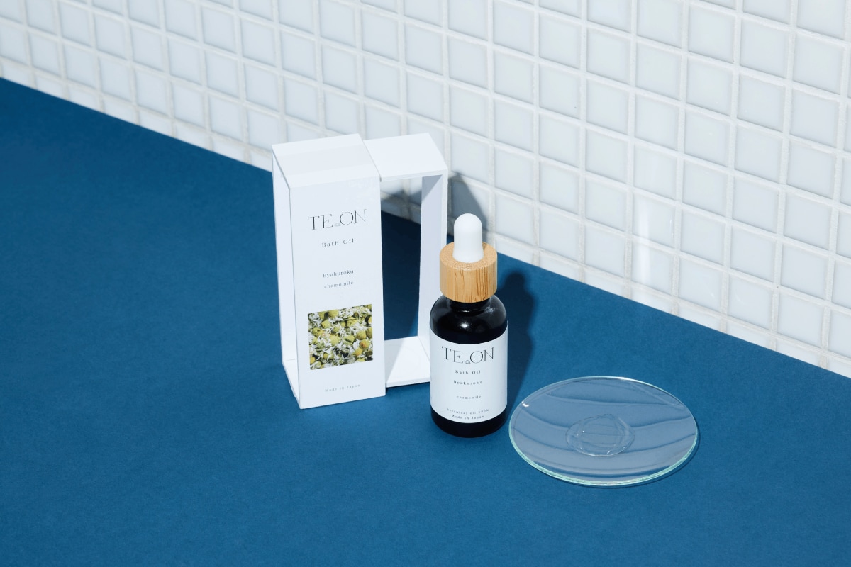 原料となる植物の栽培までも行い精油作りにこだわる〈TE.ON(テオン)〉のバスオイル。栽培したハーブをこだわりの独自蒸留法で蒸留し、植物が持つオイル成分を余すことなく抽出しています。りんごのような甘い芳香のローマンカモミール油を使用した「Byakuroku(02)」は、疲れた心身を安堵感で包みこんでくれるはず。髪まで湯船に浸かると、オイルの潤いが全身に広がります。