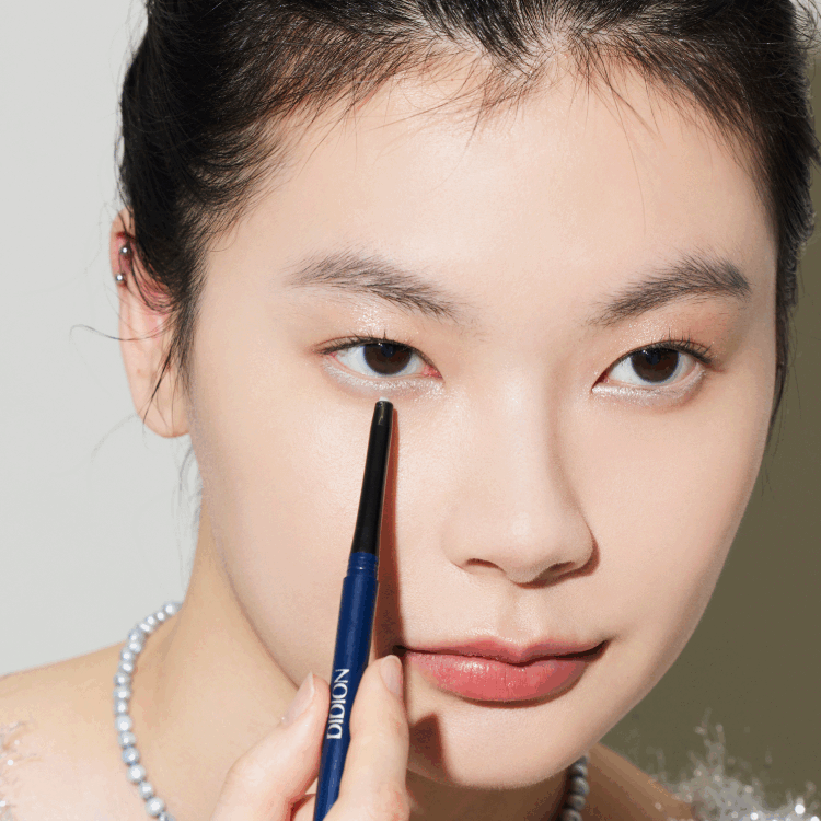下まぶたのインサイドにスムース カラー アイライナー「05 Blue Nights(02)」のブルーグレーのペンシルでラインを引く。囲み目になりすぎないように黒目下くらいまでに引くことで抜け感を残して。