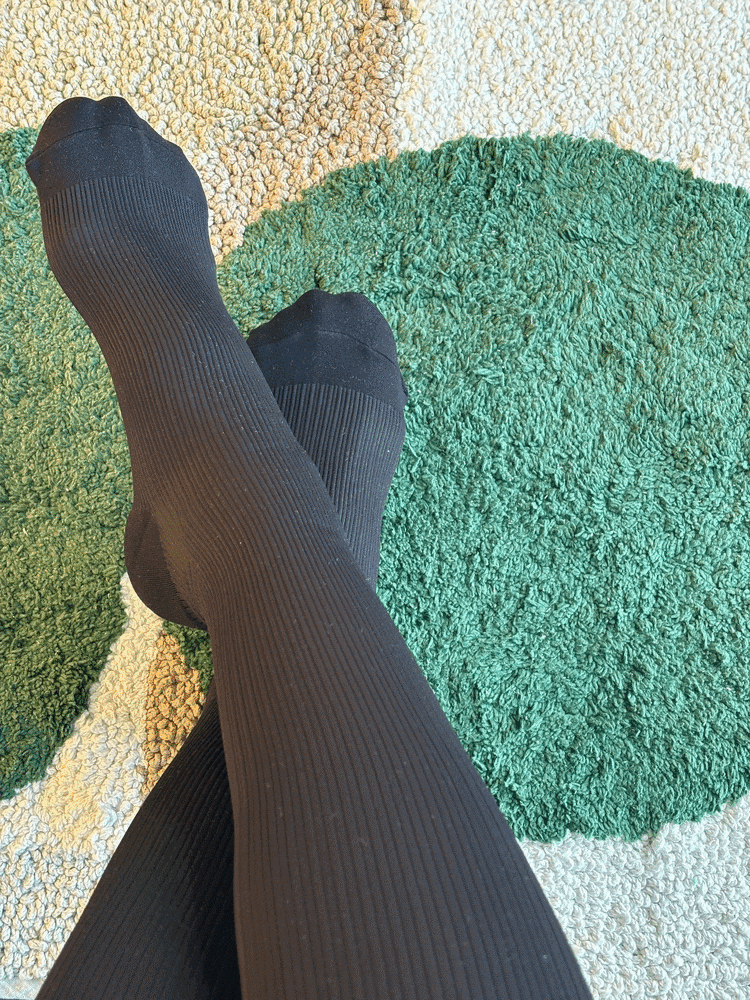 中でも感動したのが〈SpaTreatment(スパトリートメント)〉の「レッグドレナージュ」。ナノゲルマニウムが発する遠赤外線により、履いてすぐに足がじんわりと温まるのを感じました。足のラインに合わせて段階的な着圧設計で作られているため長時間履いていても、ほどよい着圧感で苦しくないのも特徴。これまで使用していた着圧ソックスやタイツは、使うごとに毛玉や破れ、伸びが気になってしまうことがあったのですが、レッグドレナージュは何度洗濯を繰り返しても毛玉ができにくく、破れたり伸びたりすることもなく買ったときのままの伸縮性をキープしています。少し高めのプライスなのですが、普通の着圧ソックスと異なり買い替えることなく永く愛用できると思えば、値段以上の品質だと言えます。