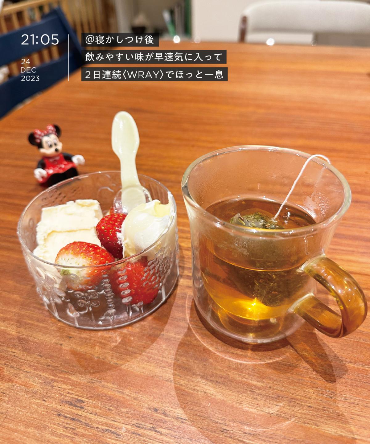 張り切ってパエリアやら作っちゃった息子の親友家族とのクリスマスパーティ後、すでにHPは赤ゲージ。寝てしまいたい気持ちをぐっと堪えて2人分のプレゼントをラッピング。誕生日プレゼントもあるので思った以上に大量でしばし格闘。疲れ果てた私を癒してくれたのは明太子せんべいと〈WRAY(レイ)〉の「バランシングブレンド」。お茶の優しい味わいが「お疲れ様」と言ってくれているようで、心まで労わってもらった感。
