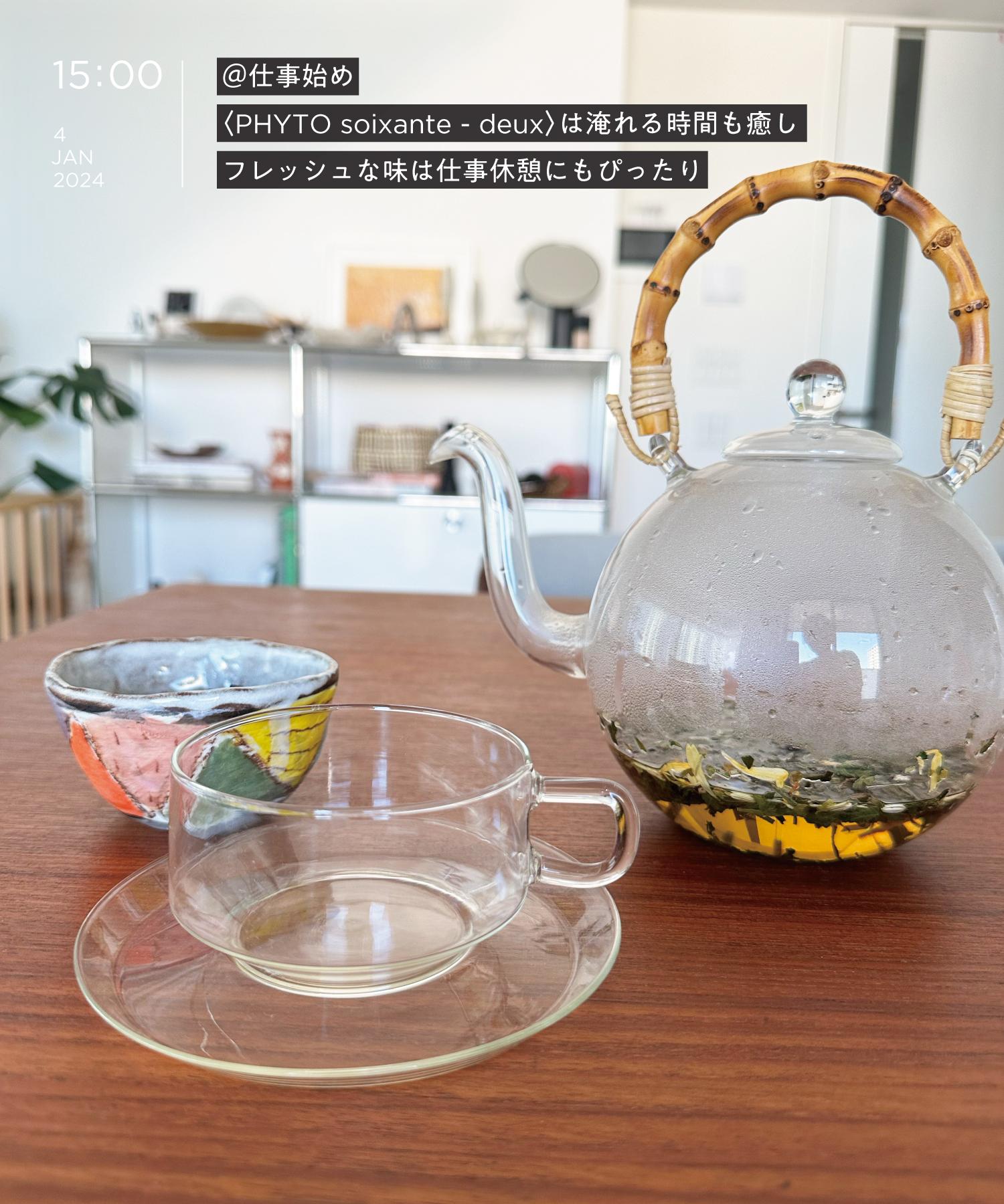 ちびっこ怪獣たちを24時間体制で見守り続ける年末年始を終え、ようやく仕事がスタート。1杯目はきちんと淹れたいと思い、とっておいた〈PHYTO soixante-deux(フィト ソワソント-ドゥ)〉の「Depurative メンテナンスのティザンヌ」を開封。ネトルやローズマリーなど、ドライフラワーのようなハーブが美しく香りも爽やかだし、美しい茶葉を淹れるという行為自体に心が満たされます。このお茶がおすすめな方は、「甘いものをよく食べる」「なんだか疲れている」「デトックスしたい」「肌荒れしている」「アレルギーがある」。え、全項目パーフェクトに当てはまるんですが、誰か私の生活覗き見してますか(汗)。