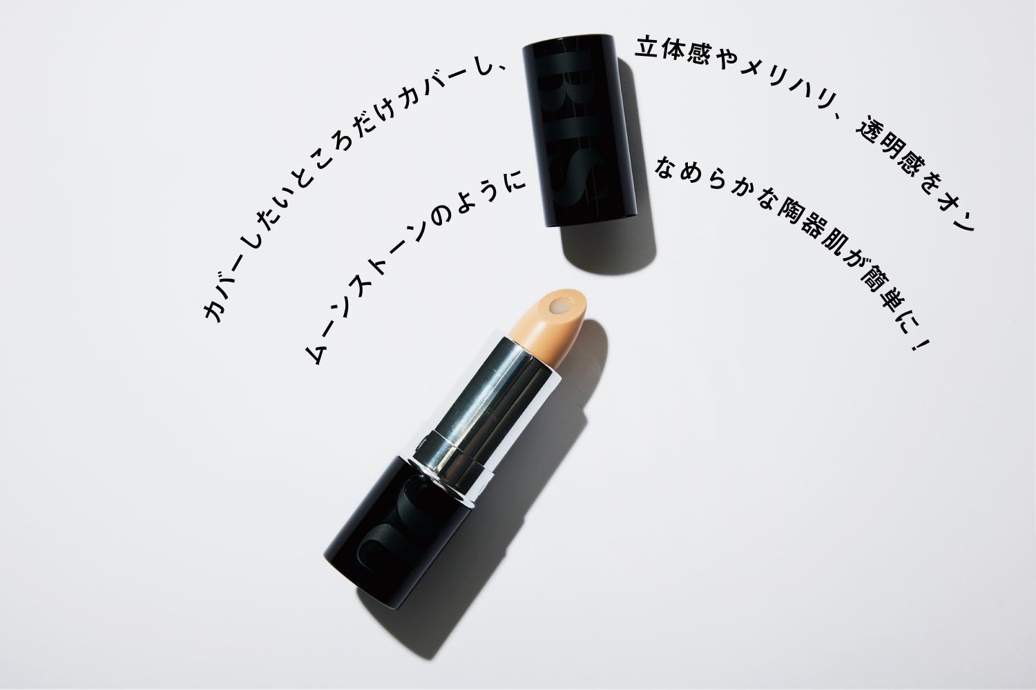 そもそもベースメイクは、全顔をフルでカバーする必要はなし。UVカットさえしておけばOKなんです。カバーしたいところだけカバーし、立体感やメリハリ、透明感をオンしたい!そんな希望をお持ちなら、ぜひ〈BISOU(ビズゥ)〉のエンハンシングスティックを。用途にあわせたカラーバリエーションが魅力のエンハンシングスティックですが、この冬推したいのが「ホワイトムーンストーン」。今って、肌を少し明るく仕上げるのが流行っていますよね。これなら、月の光に包まれたような上品なツヤを放つ、ムーンストーンのようになめらかな陶器肌を簡単に作ることができるんです。するすると顔に落書きするようにしてスポンジやブラシで伸ばせば、広範囲の肌も美しく。日中のリタッチにも重宝します。スポットでカバーするのもおすすめですが、ハイライトとして使いたいときは、塗ったあとに指でポンポンとなじませて。エンハンシングスティックは、中央にスキンケアバームが仕込まれているので、同時に保湿もできてしまうところもポイント。今の季節のベースメイクティップスをスマートにしてくれる逸品です。