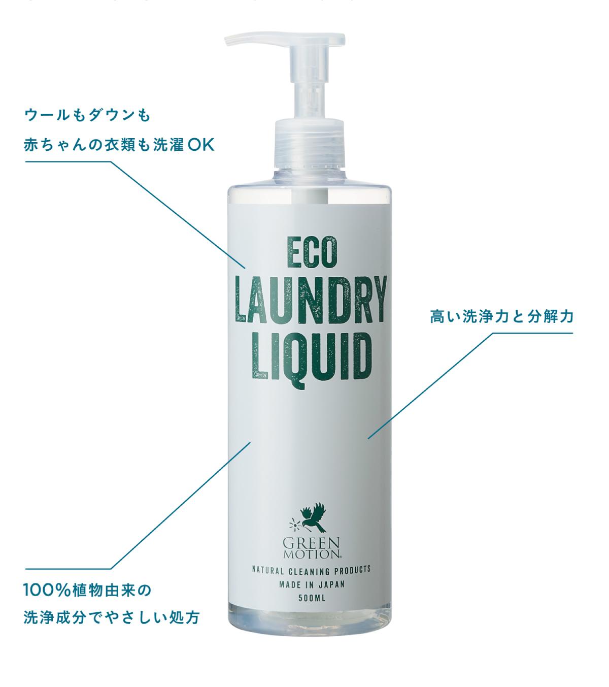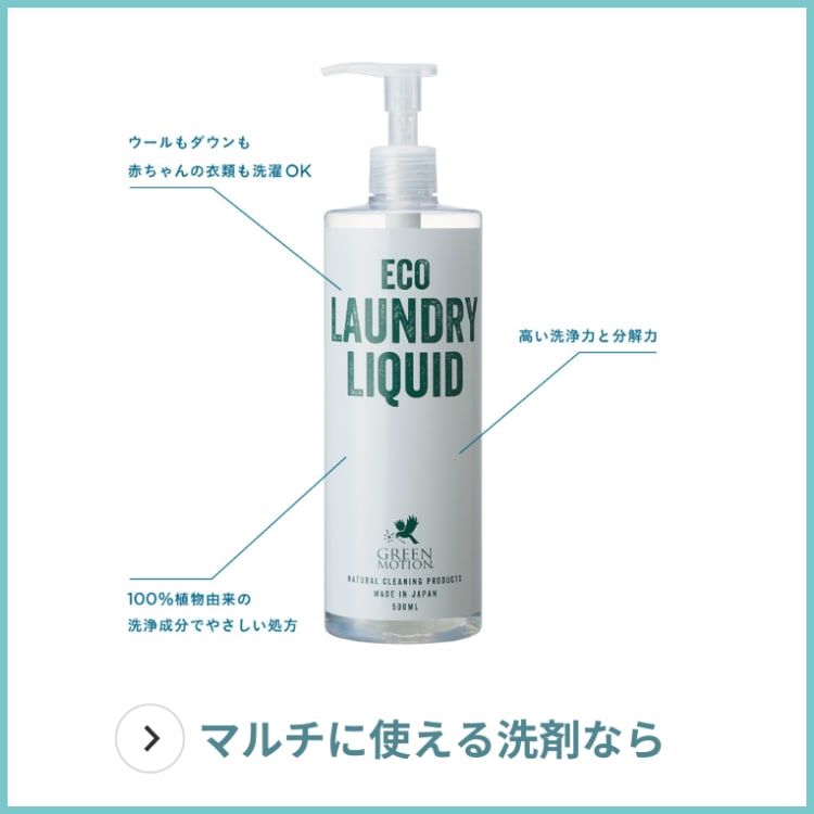 「汚れをしっかり分解するけれどやさしく洗いあがるので、デリケート素材の洗濯もおまかせ。ウールやシルク、カシミヤなどのドライマーク品や、ダウン素材やアウトドアウェアなどの防水透湿素材の衣類、子ども用の衣類まで。繊維1本1本を起き上がらせて、衣類本来の風合いに仕上げます」GREEN MOTIONってどんなブランド?