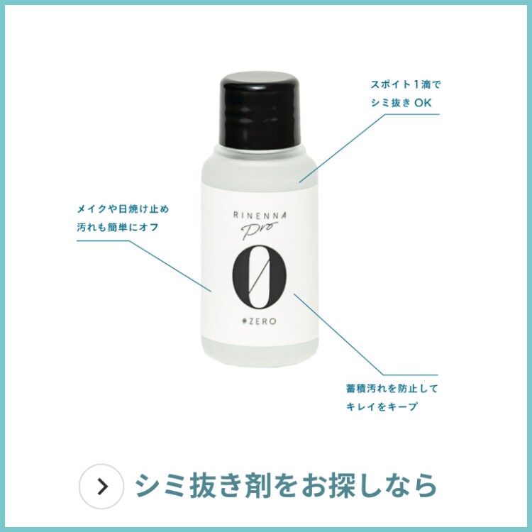 「襟の黒ずみや黄ばみは蓄積汚れが要因です。『RINENNA Pro 0 #ZERO』を10倍に希釈したものを気になるところにかけて洗濯すれば、蓄積汚れ防止に役立ちます。お気に入りの衣類のキレイを保てる洗濯洗剤です」Rinennaってどんなブランド?