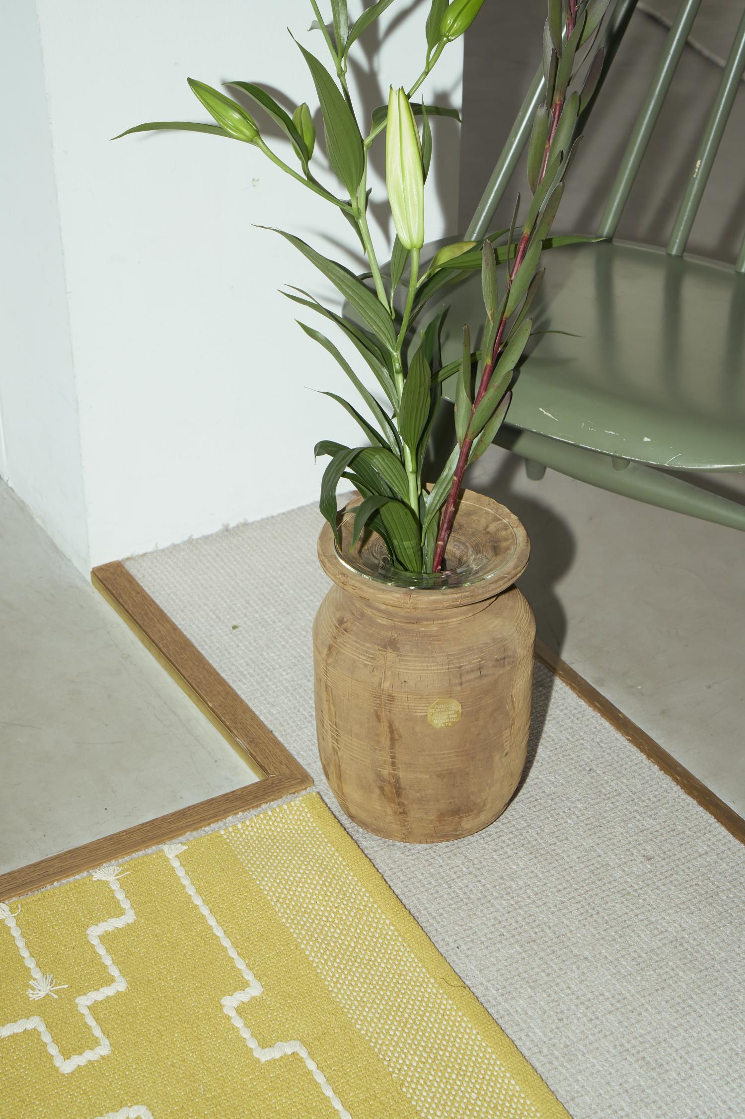 独特のムードを放つ木製のヴィンテージフラワーポット。穀物の保存容器として使われていたという木製のキャニスターをリユースし、取り外し可能なガラスシリンダーがセットされています。アイテムはシリアルナンバー付きで一つひとつサイズや色味、ディテールが異なるのも特徴。迎え入れたら愛着が湧いてくるはず。