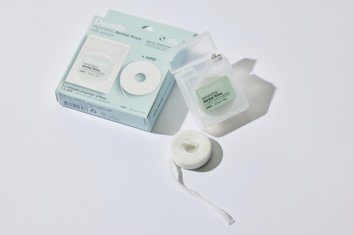 オーラルケアブランド〈Davids(デイヴィッズ)〉に新登場したデンタルフロスは、250本以上の超極細繊維を編み込んだフラットタイプ。狭い歯間部でも挿入しやすく、歯間にあわせて広がりフィットするので、細かい歯垢まで逃さずキレイにしてくれます。天然ミントオイルのフレーバー付きで、すっきり感も◎。エコフレンドリーな〈Davids〉らしく、リサイクルペットボトルから作られたポリエステル繊維を使用し、ヴィーガンワックスとカカオバターでコーティングされています。レフィル付きなので専用ケースは繰り返し使って環境への配慮もお忘れなく。