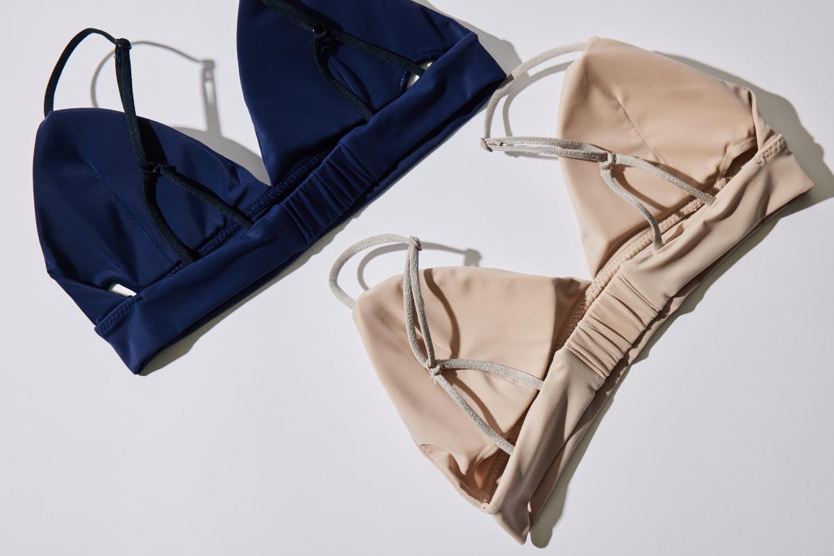 ポイントは、華奢なストラップに対しアンダーバストはしっかりと安定させてくれるサイズ感。ズレがなくブラ特有の締めつけ跡が身体に残らないのも最高です。そして、ショーツ同様にノンストレスでなめらかな肌あたりの素材。バックシルエットのストラップのデザインもかわいく、薄着の季節にも大活躍するはず!