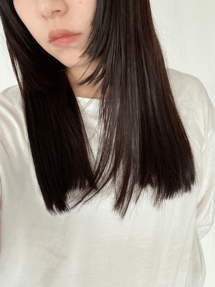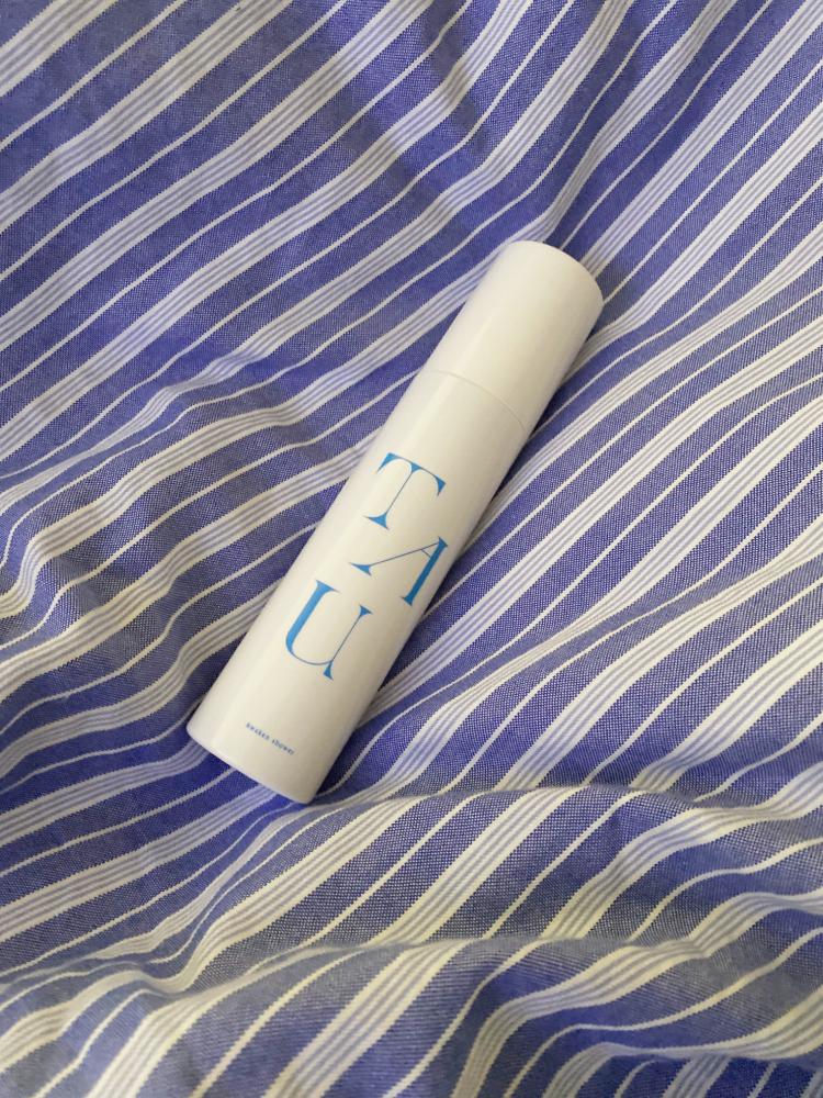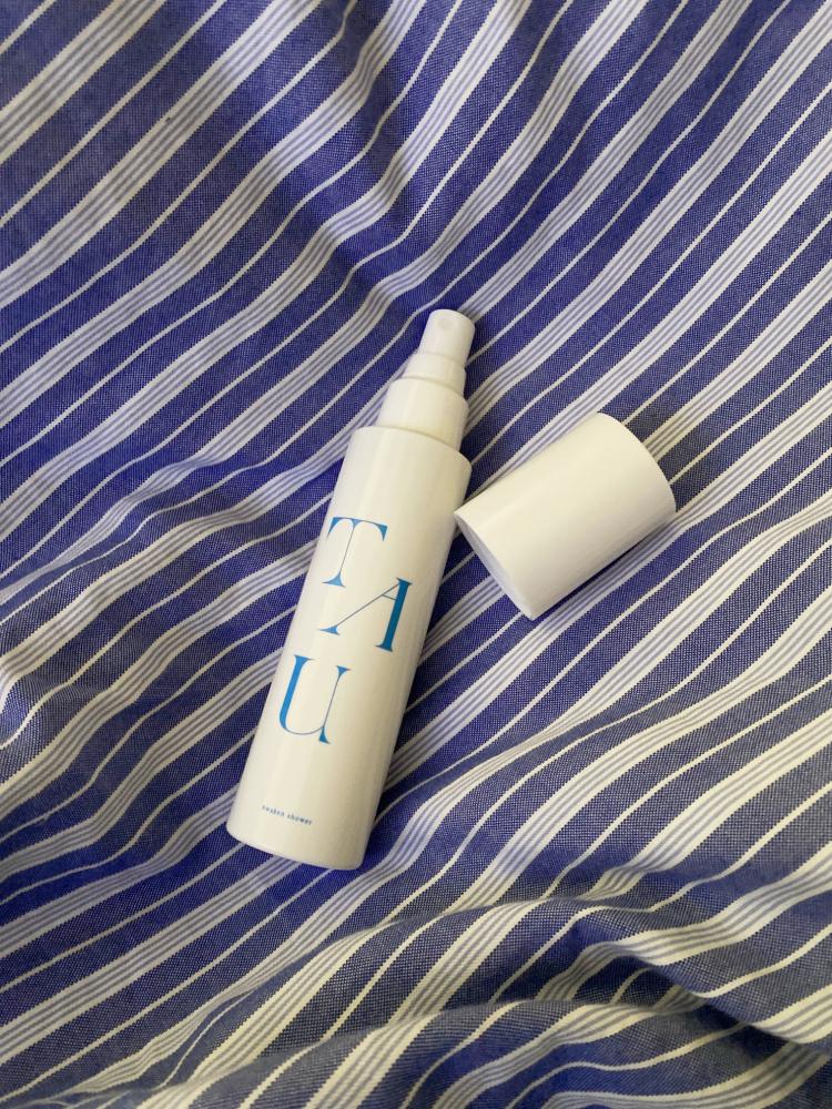 ストレートヘアがトレードマークなRINAさん。広がりやすくパサつきやすい髪質から、普段もオイルでスタイリングをすることが多いのだそう。そんなRINAさんが今回使ったのは、体にも髪にもマルチに使える〈TAU〉の「アウェイクンシャワー」。ホホバオイルが配合されたヘアミストは保湿力もばっちり。ブローの前に髪全体に吹きかけると、しっとりつややかな髪へと導いてくれます。