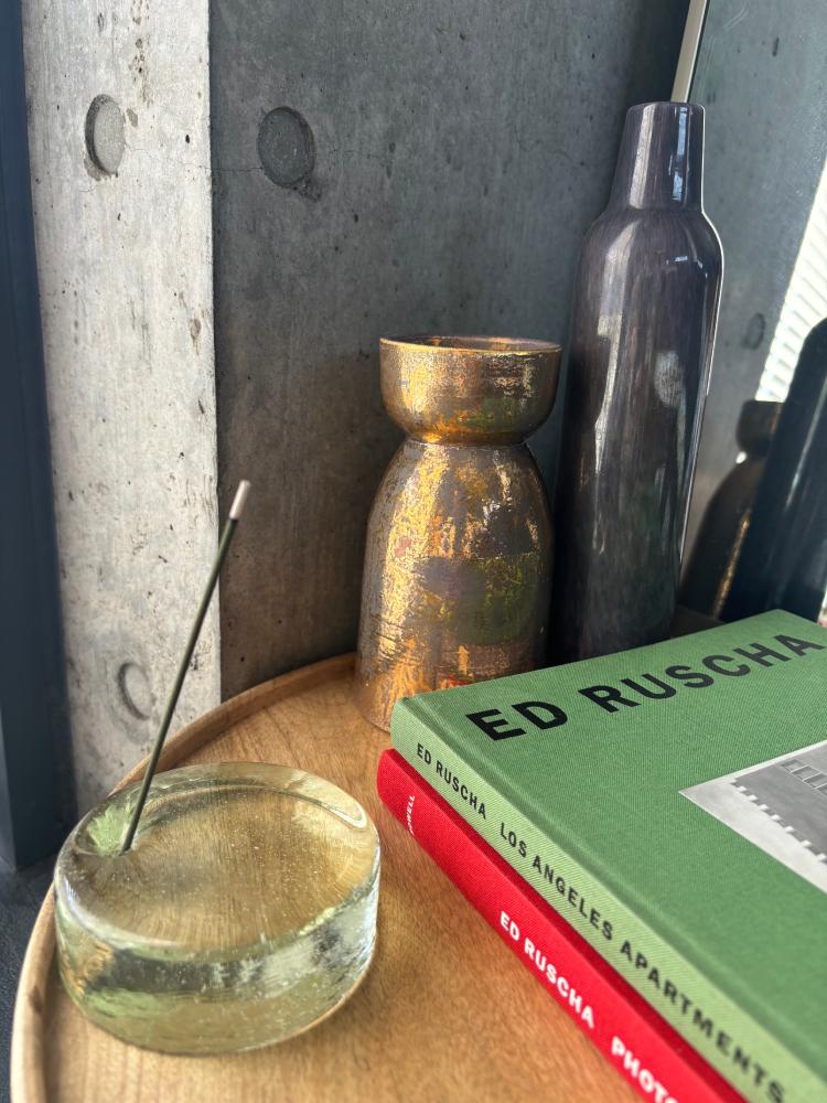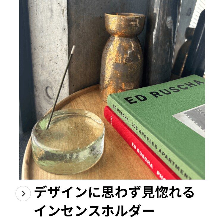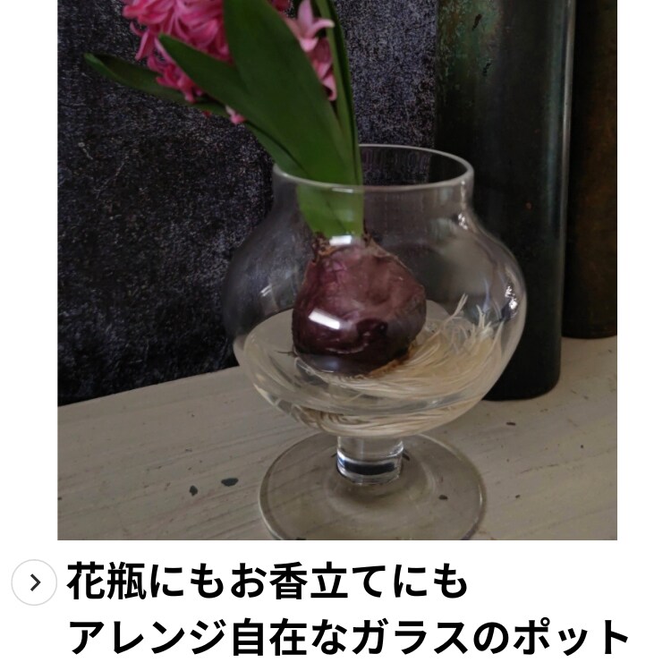 ハンドメイドならではのガラスの質感とぽってりとした形が美しい〈LAN〉の「glass pot」。今の時期なら花器として球根付きのヒヤシンスを入れて、ある時は浄化作用のあるホワイトセージを……と、さまざまな使い方をできるのが魅力です。早く起きた朝には香炉灰を入れてお香立てにしたり、睡眠の質を上げたい時は枕元に置くフランキンセンスの樹脂入れにしたりと、ライフスタイルに合わせて楽しんでいます。
