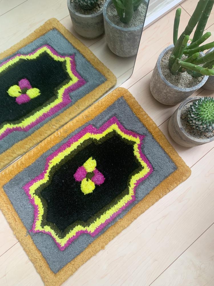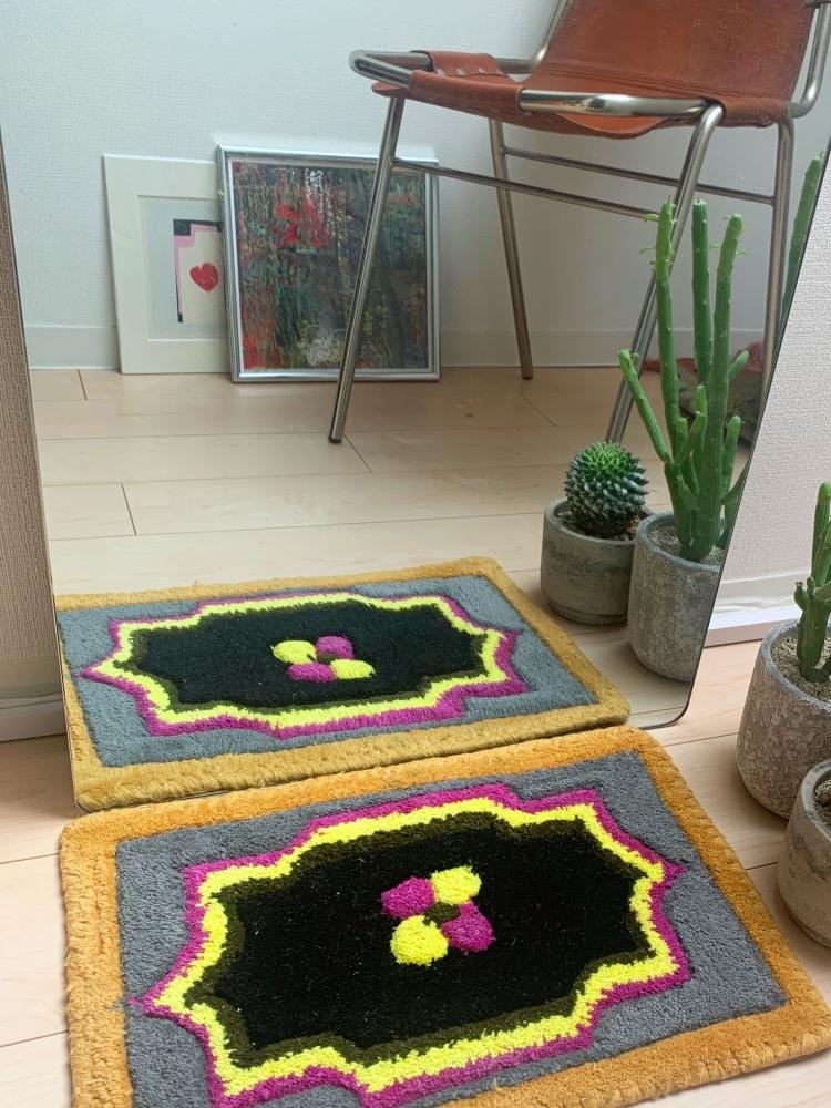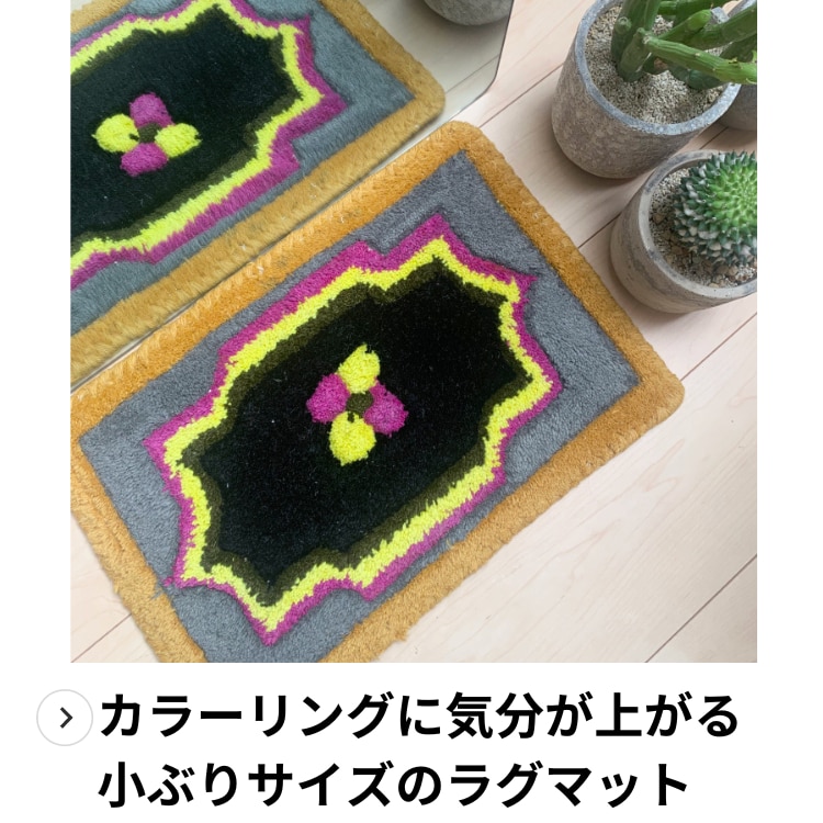 気分の上がるインテリアアイテムをお探しの方におすすめしたいのが、〈PUEBCO〉のラグマット。鮮やかなカラーリングとパターンが目を引くアイテムは、1枚敷くだけで味気ない部屋を一気に華やかにしてくれます。小ぶりなサイズ感が特徴的なこちらのマット、玄関はもちろんですが部屋の入り口やラウンジチェアの足元に敷くのにもちょうどいい具合。わが家では姿見の前にマットをオンして、毎朝出かける前にカラフルなラグにパワーをもらっています。どのカラーが届くかは届くまでお楽しみ! 到着するまでの時間も楽しめるアイテムです。