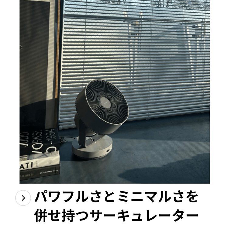 オールシーズン活躍する〈cado〉の除菌サーキュレーター「STREAM1800」は、部屋干しの洗濯物の消臭乾燥や、空気の循環に便利なアイテム。天高の広いリビングでもエアコンの空気を循環してくれます。必要機能はパワフルに装備されている一方で、余計な機能は削ぎ落とされたシンプルさと使いやすさが特徴です。シックでスタイリッシュなデザインに惹かれ、インテリアアイテムとしても気に入っています!