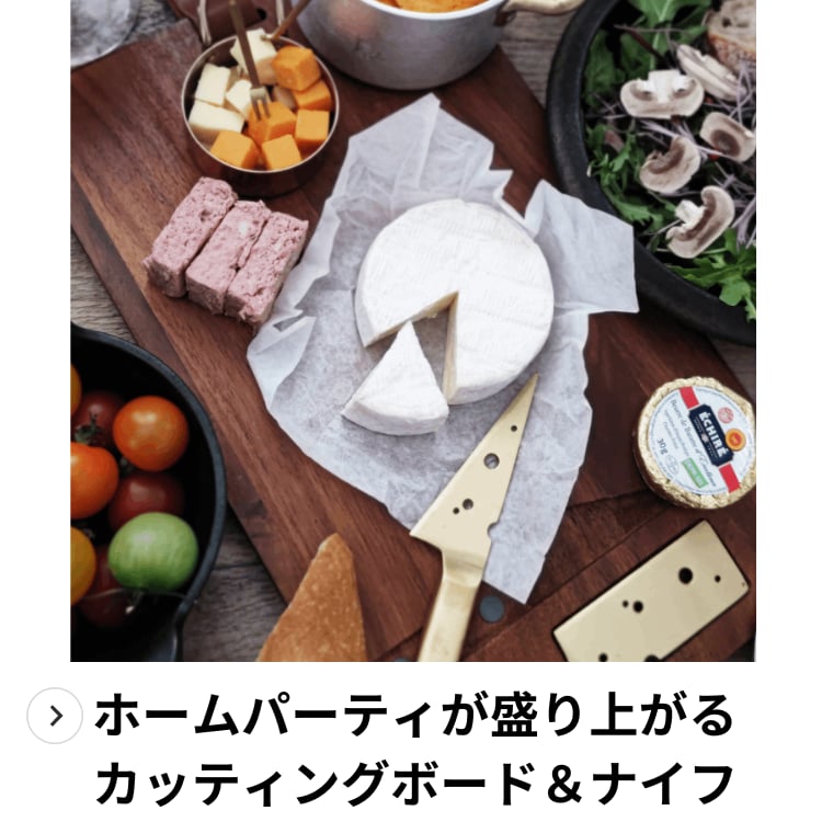 海外では食欲を刺激する魅力的な食事の写真を「フードポルノ」と表現するそうで、この「チーズポルノ」はまさしくチーズを美味しく魅せるためのボード。ウッドボードは我が家にいっぱいあるにも関わらず、トムとジェリーを彷彿させる丸い穴の空いたチーズ型ナイフの遊び心あふれるデザインに、キッチンアイテムオタクの血が騒ぎ購入してしまいました。早速食いしん坊仲間とチーズパーティを楽しんでいます!