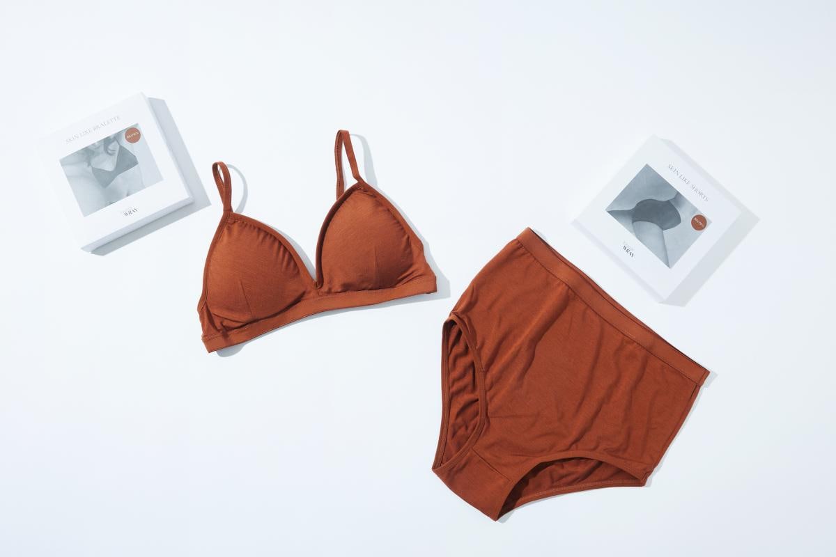 ブラレットと同様に締め付けにくいウエストゴムを採用したショーツは、お腹の冷え予防まで考えられたハイライズ丈がポイント。ヒップをまるっと包みこむ安心感のある設計に、女性のウェルネスを一番に考える〈WRAY〉ならではの気遣いが光ります。
