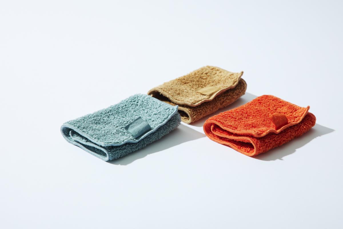 長方形のミニサイズで、コンパクトに収納できる〈Pororoca(ポロロッカ)〉のハンドタオル。Pororocaのスキンケア成分にも含まれる甘草やクコの実、桑の実の植物染料で染められており、植物のエネルギーを感じられる鮮やかなカラーリングに仕上がっています。