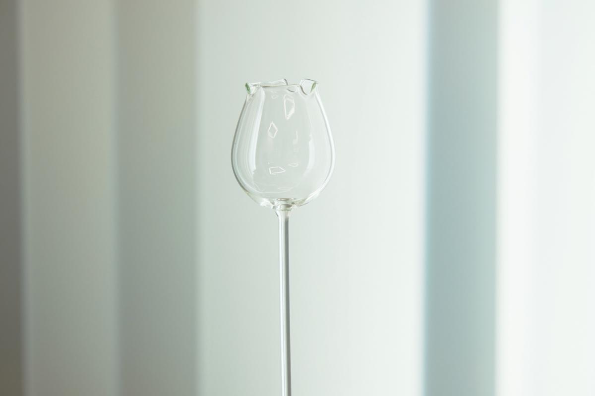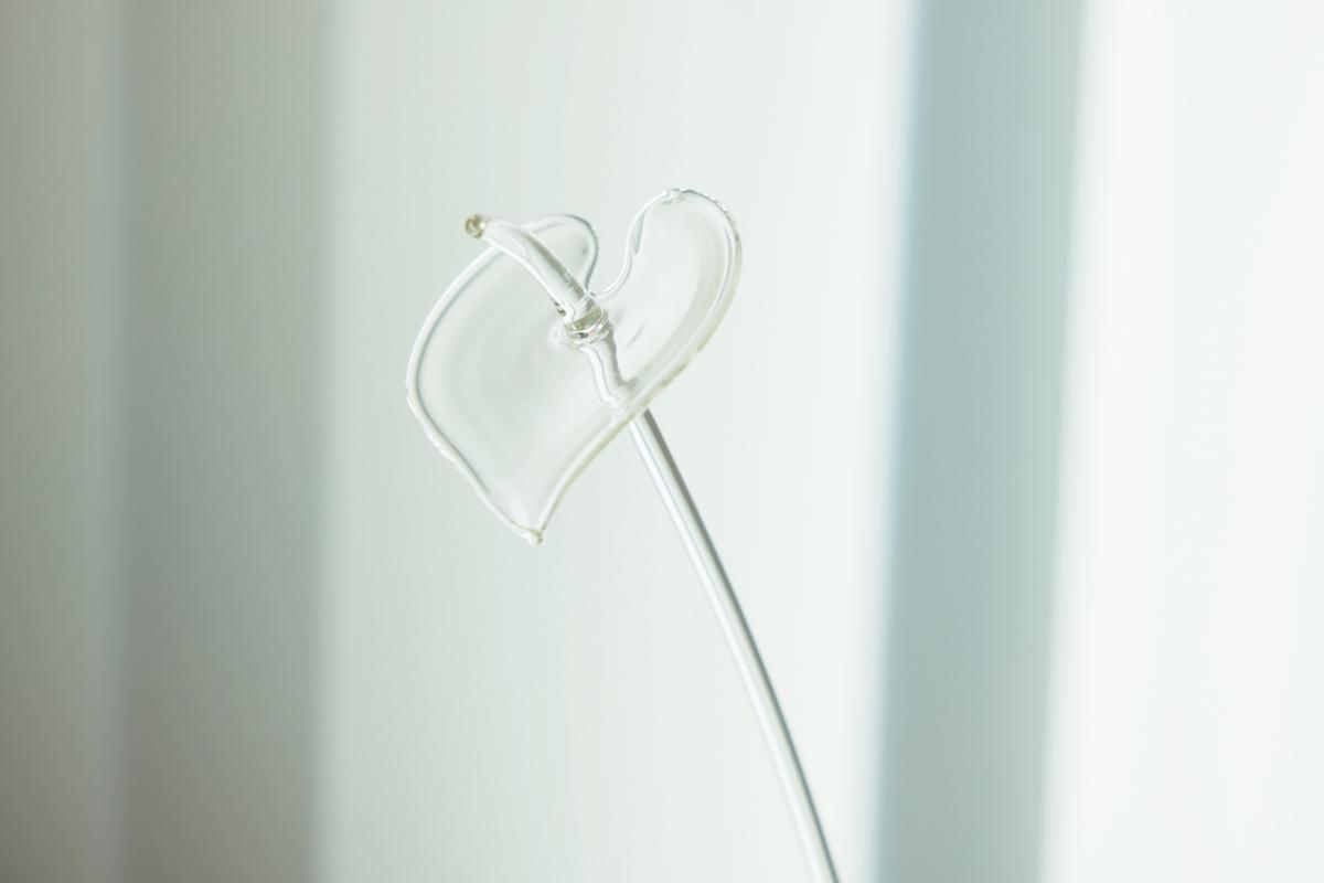 どんなに大切に愛でていても枯れてしまう切り花と、大切に扱っていてもいとも簡単に割れてしまうガラス。そんな2つの儚く美しい姿をテーマにした〈ANDSPACE by TOUCHU(アンドスペースバイトウチュウ)〉のガラスフラワーが登場しました。切り花の種類や高さに合わせてアレンジメントしやすいようロングサイズとショートサイズ(写真はロングサイズ)でそれぞれ3種類のフラワーをご用意。
