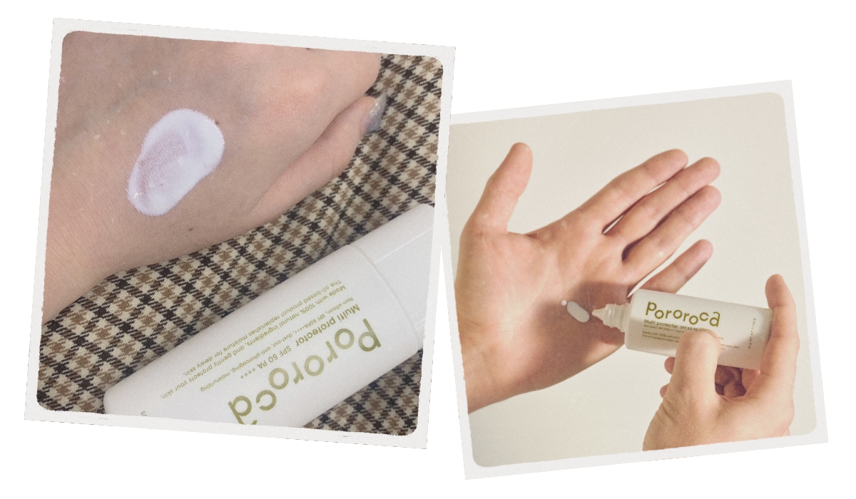 「Pororocaの日焼け止めのポイントは、紫外線だけでなく空気汚染からも肌を守り、汗や水で落ちることのないウォータープルーフ設計であること! さらりと伸びるテクスチャーで、敏感肌にもやさしく薄付きでもしっかり効果を発揮します。オイル配合で自然な艶感が出て、乾燥することもありません」(Saki/Buyer)
