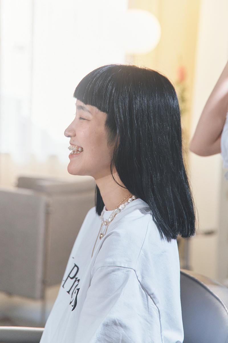 「広がりやすく、梅雨時期は髪の内側が汗ばんでウネっとしちゃうのが悩みですね」と話す稲垣さん。