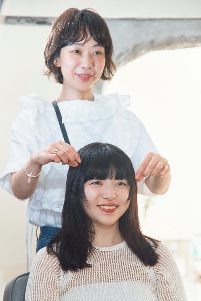 その人らしさを引き出しながらナチュラルでどこかモードなヘアを得意とする英香さんがオーナーを務めるヘアサロン「une」の2号店。藁を使った内装など、英香さんのクリエイティビティが発揮された店内は過ごすだけでも楽しい空間。