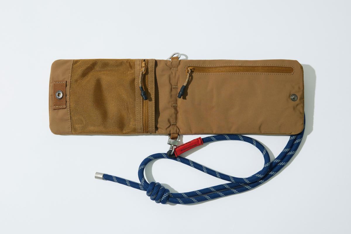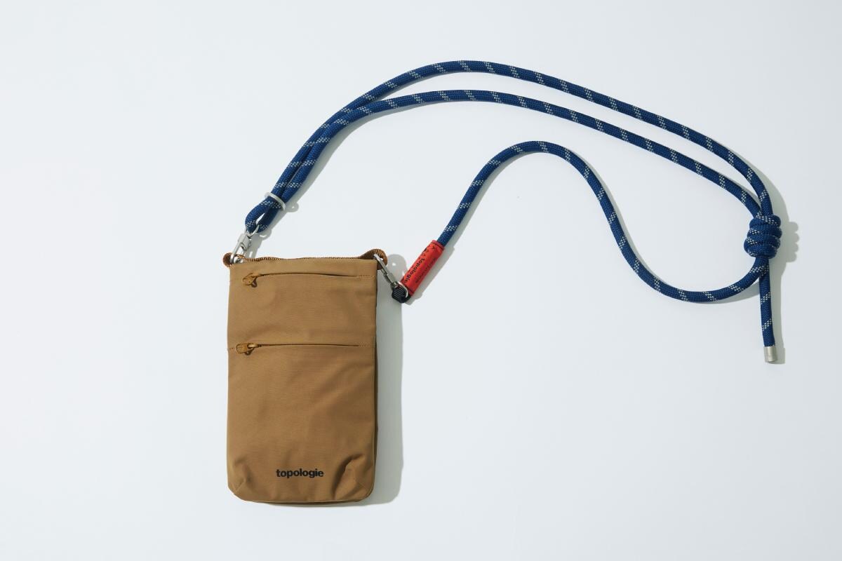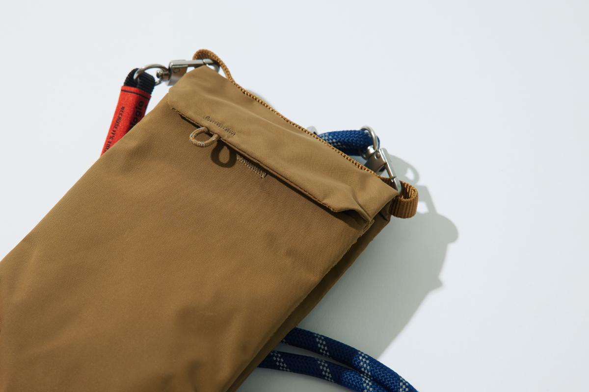 そしてロープストラップに合わせたのは旅行やレジャーシーン向けにデザインされた「フォンサコッシュ」。前面にはミニポケットが2つあり、背面にはスマホがすっぽりと入るようなポケットがデザインされています。