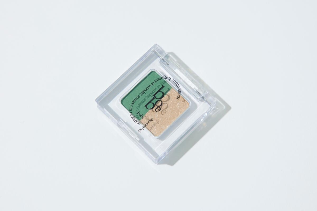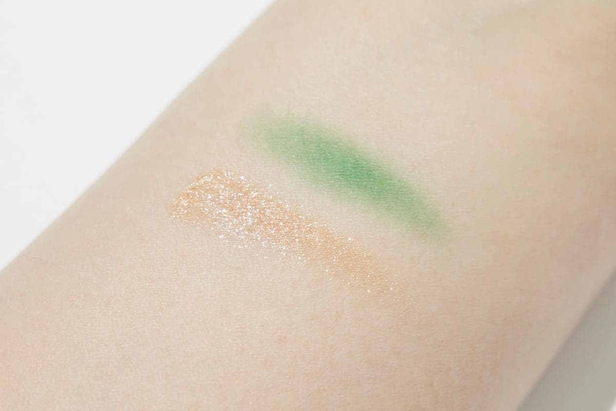 「WINDY GREEN&STAR GOLD(98)」は、草木の緑のようなマットグリーンと煌めく太陽の光をイメージしたゴールドのラメの2色のパウダーシャドウがひとつになっています。一見鮮やかに見えますが、肌にのせるとすっと馴染み、ほどよく発色。マットとラメのバランスが良いので、簡単に抜け感のある目元を演出できます。カラーメイクを取り入れて、メイクもファッションも初夏の季節を楽しんで。