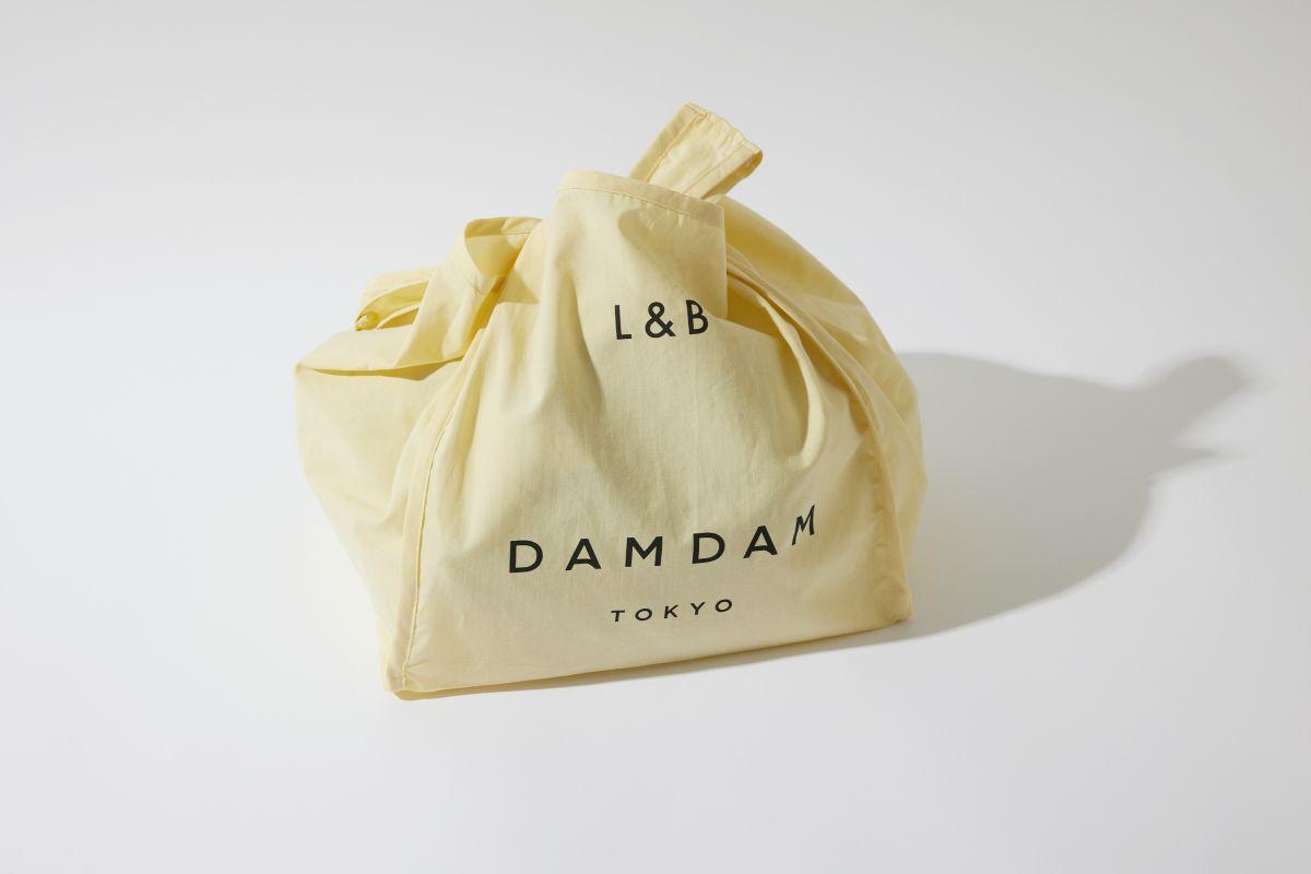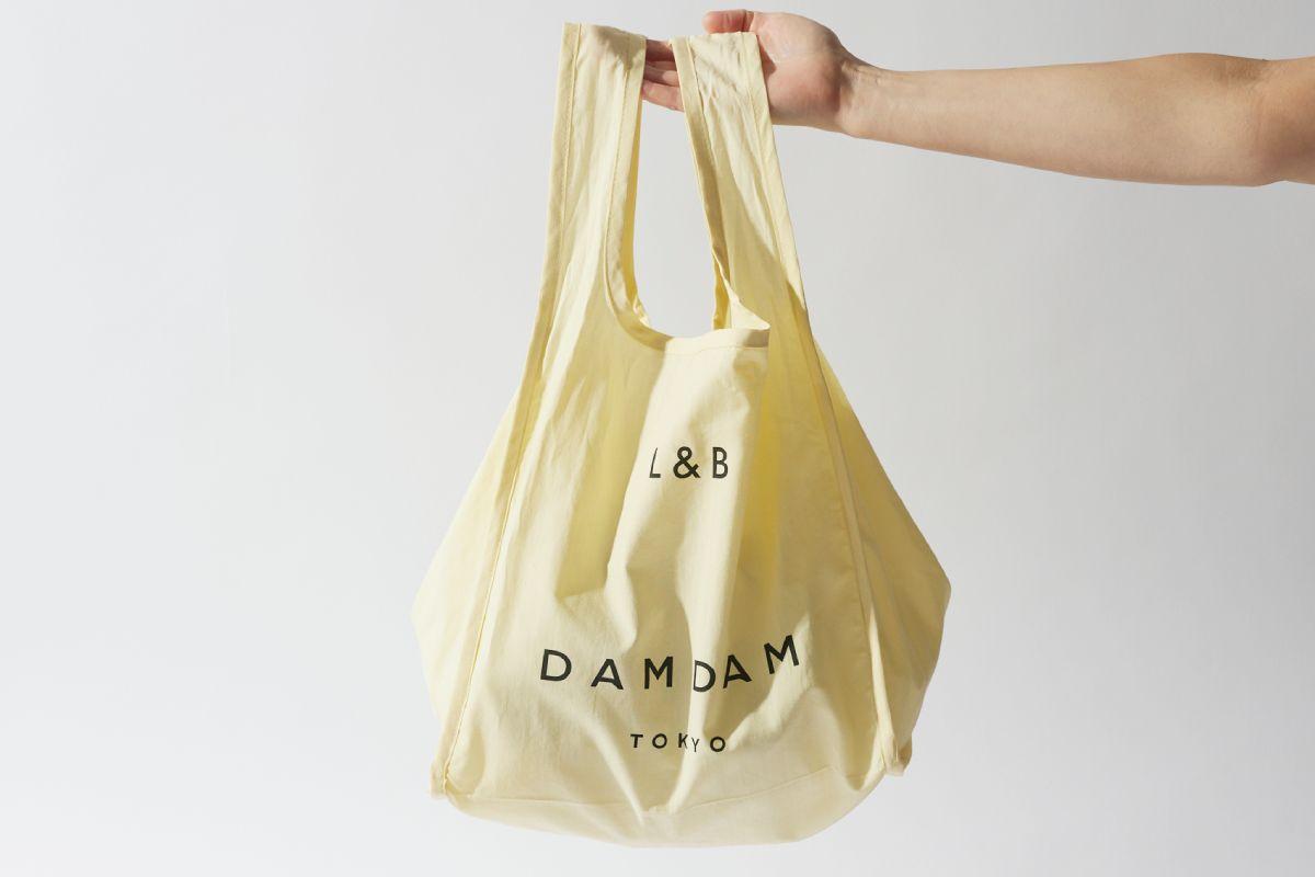 こちらは日本発のクリーンスキンケアブランド〈DAMDAM〉とのコラボエコバッグ。形はそのままに、涼しげなイエローにカラーチェンジしたLife&Beauty by JUN ONLINE限定のアイテムです。