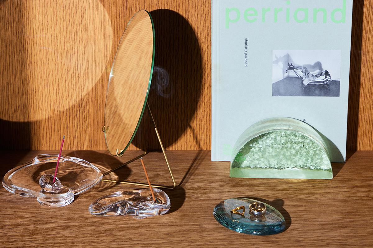 雫のような「AME NO SHITA」はジュエリープレートとして使えば、お気に入りのアクセサリーにさらに愛着が湧きそうです。半円形が珍しい「HAMON 140φ Bookend」は重たい洋書もしっかりと支えるブックエンド。ガラスウェアだからこそ楽しめる水景のようなヴィジュアルにうっとり。
