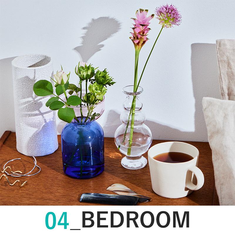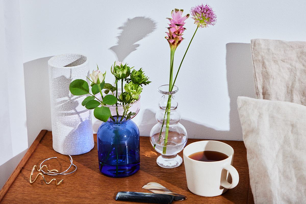 朝起きてからと、夜眠りにつく前。一日の始まりと終わりを過ごすベッドサイドにはオブジェのような美しい花器と生花を添えてみるのはいかが? 背が高すぎない小ぶりなサイズ感のフラワーベースは、ベッドサイドにぴったり。