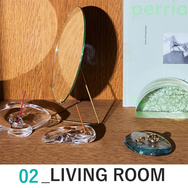 (写真左から)ころんとした玉部分にお香が差せる「glass plate stand」と、短いお香立てとして便利な「glass tray mini」は、インテリアにコンテンポラリーなムードを与えてくれます。