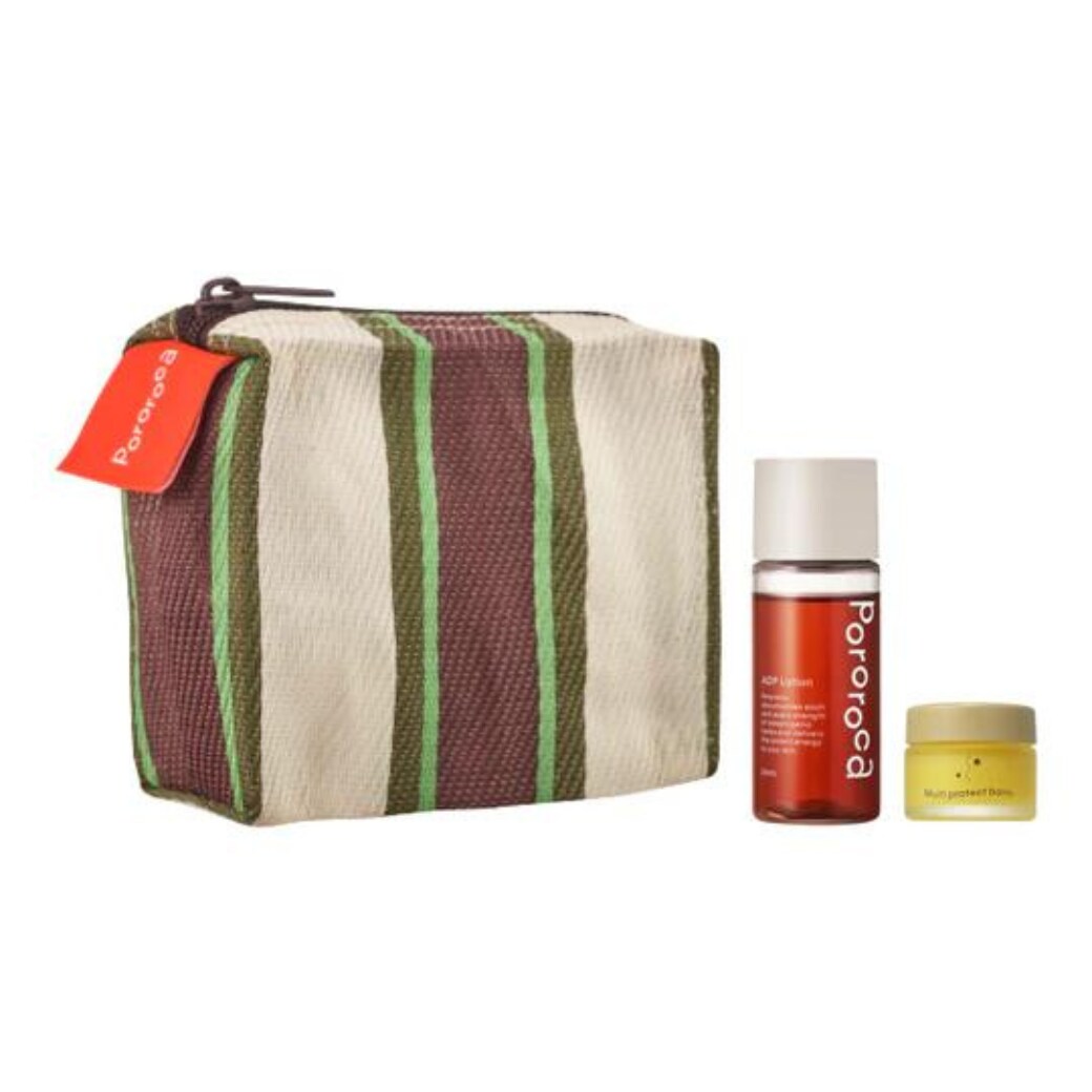 肌を潤わすマルチプロテクトバームとADPローションのミニサイズがセットに。旅行や、お出かけ時の持ち運びにも◎。初めてPororocaの商品をお使いになる方にもおすすめなトライアルタイです。