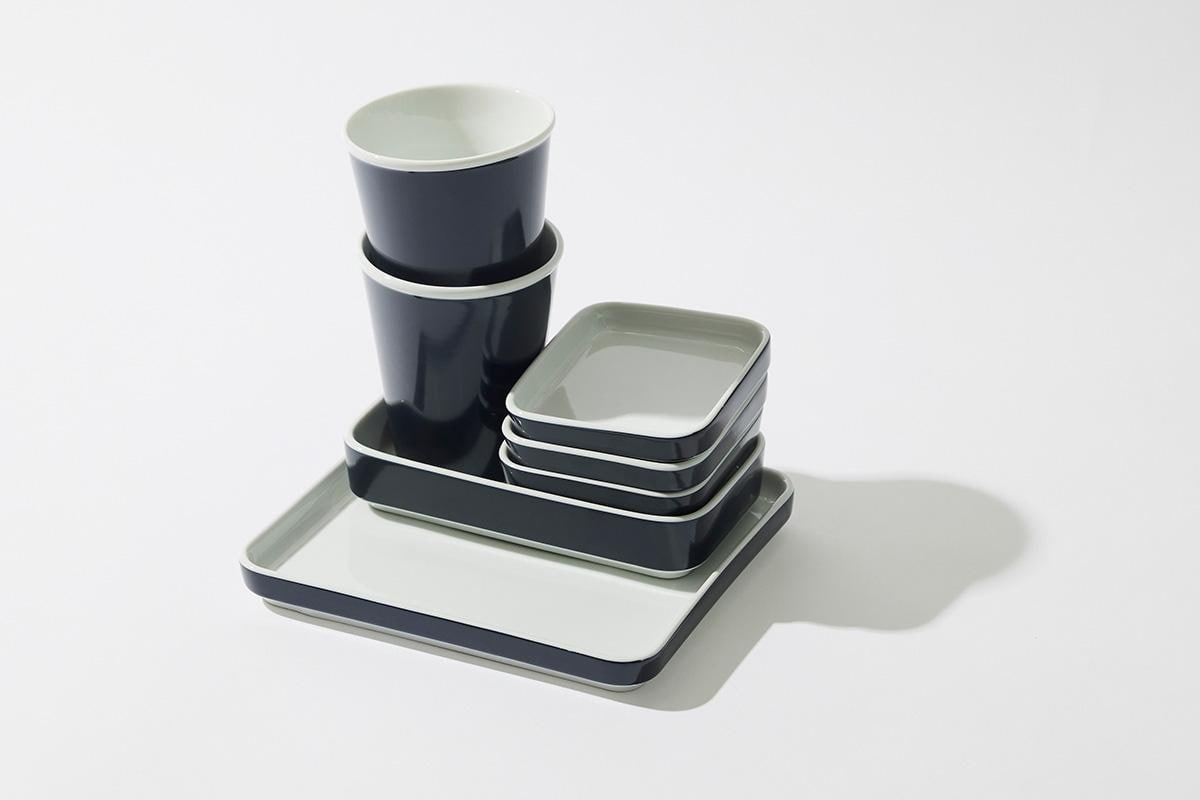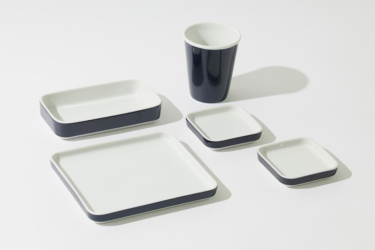 (写真手前から時計回りに)サラダや煮込み料理などを盛るのに幅広く使える深皿の 「キャセロール」と、メインディッシュ用にもちょっとしたおやつプレートを作るのにもぴったりな 「プレートラージ」、紙コップをそのまま陶器にしたようなデザインの 「ポーセリンカップ」、フルーツやナッツをのせてスナックタイムにも重宝しそうな 「ボウルフラット」の4種がラインナップ。全部そろえてもテーブルの上がコンパクトにまとまるのでひとり暮らしの方にもおすすめです。