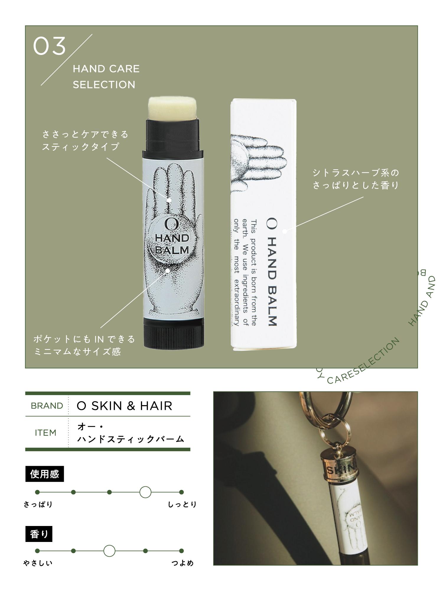ありそうでなかった、スティック型のハンドバーム。繰り出しタイプなので無駄に手に取りすぎちゃった、ということも防げてとっても画期的!体温でするすると馴染んでくれるのに、しっかり手や爪にうるおいを与えてくれます。シトラスハーブ系のさっぱりとした香りにも癒されるので、使うのが楽しくなる1本です。