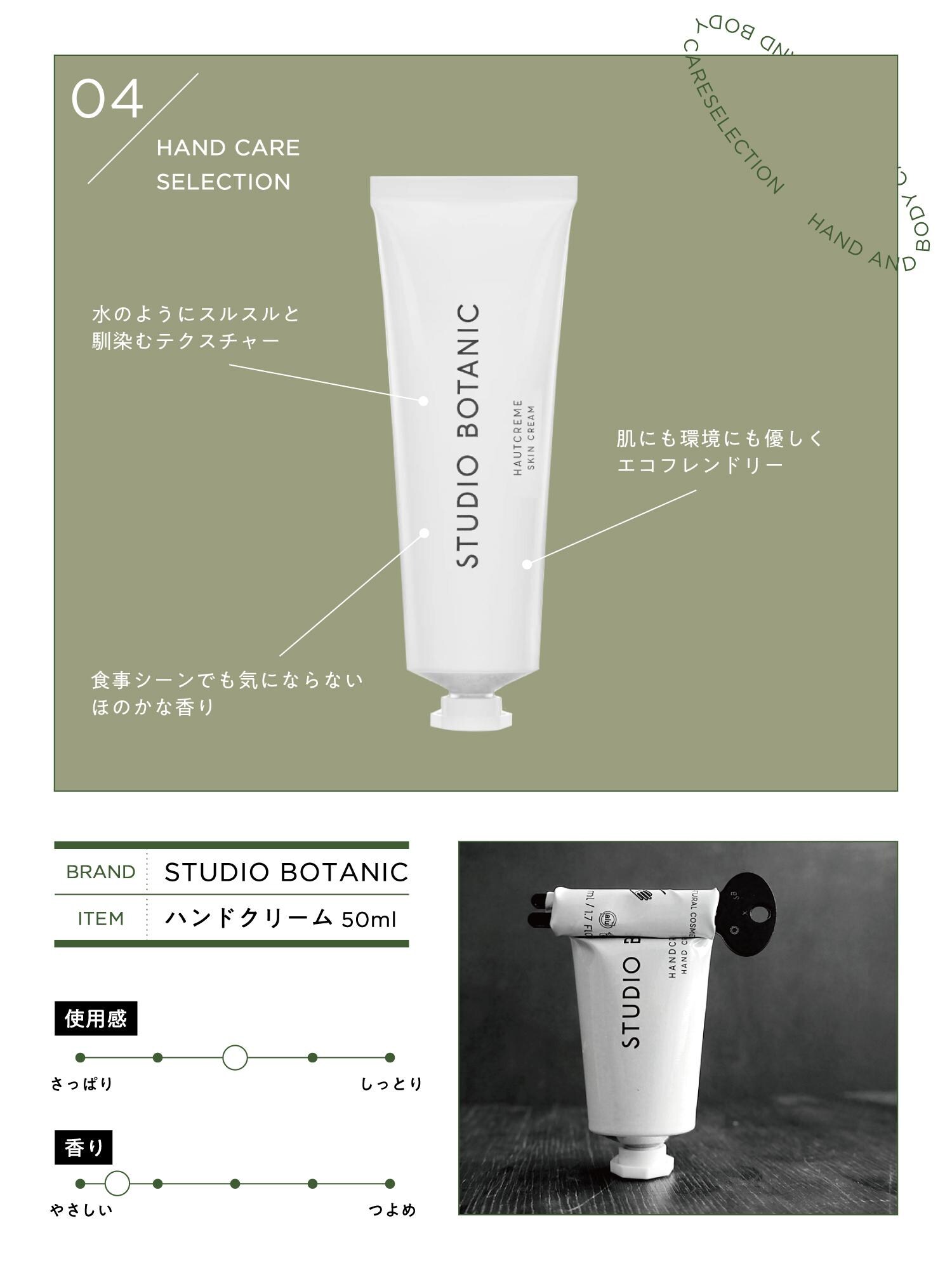 私にとってハンドクリームを選ぶうえで一番大事なポイントが、ベタつかないこと。このハンドクリームはこれまで出合った中で間違いなく一番べたつかない! 伸ばした瞬間に(時間にして1秒くらい)しっとりながらサラサラの肌に。すぐにマウスやキーボードに触れます。ミニマルなデザインも魅力です。